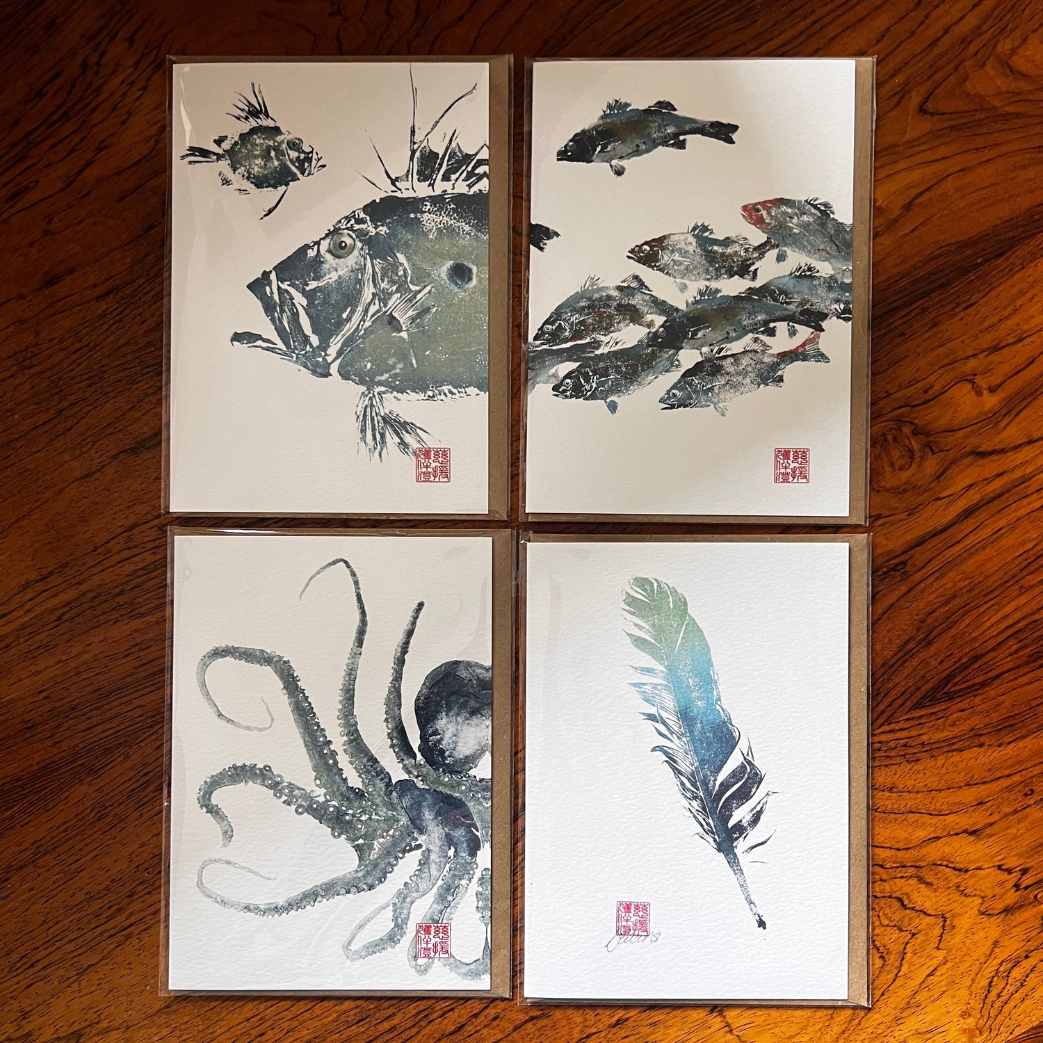 This collection of greetings cards were digitally produce from my original gyotaku...