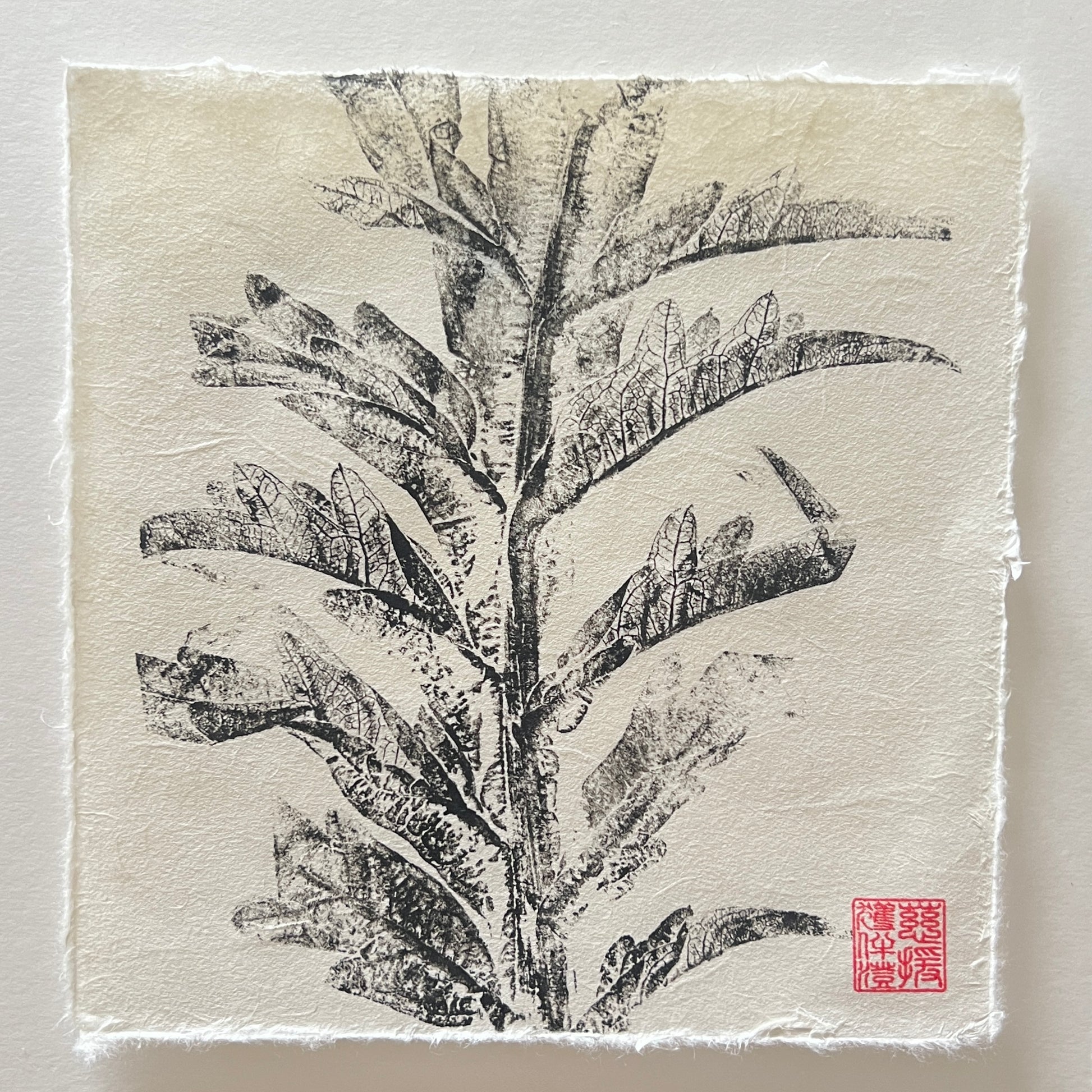 Artichoke Leaf Mini Print – Black Ink on Thai Mulberry Paper