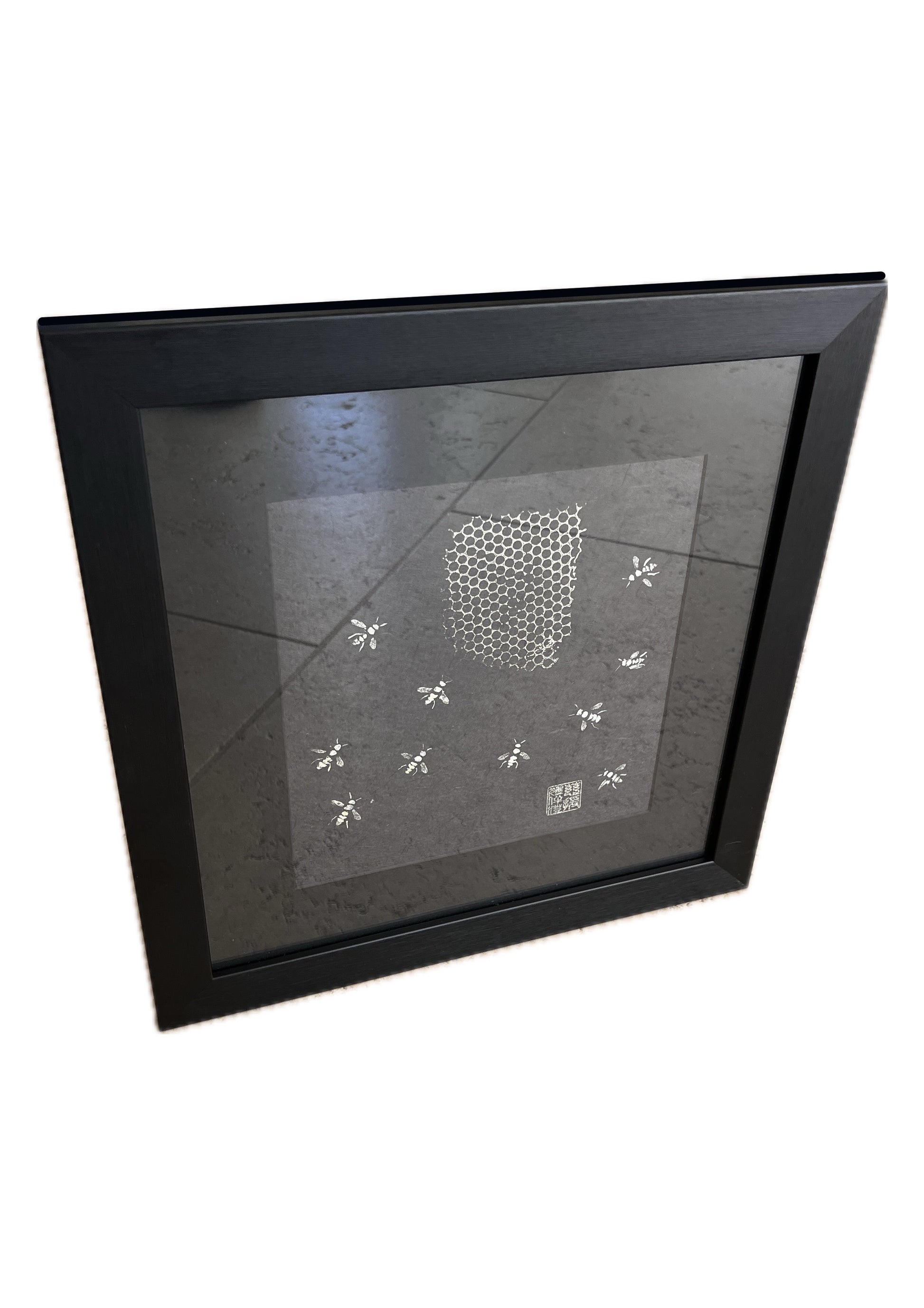 I've been printing from bees and honeycomb for a couple of years now and they always prove to be a popular subject. This print is on Thai Mulberry Paper and I've used a Gold acrylic ink which is lightfast and permanent.