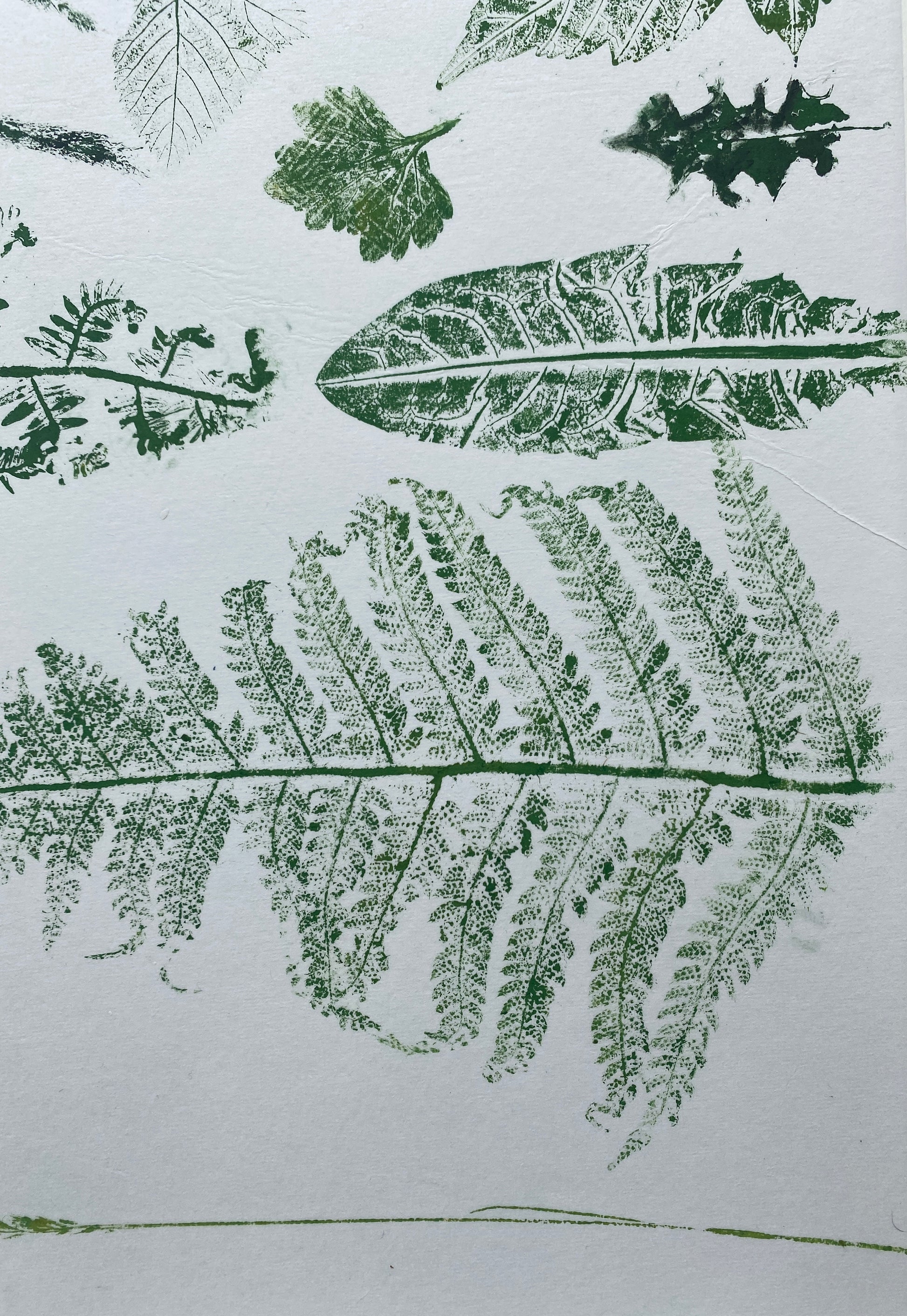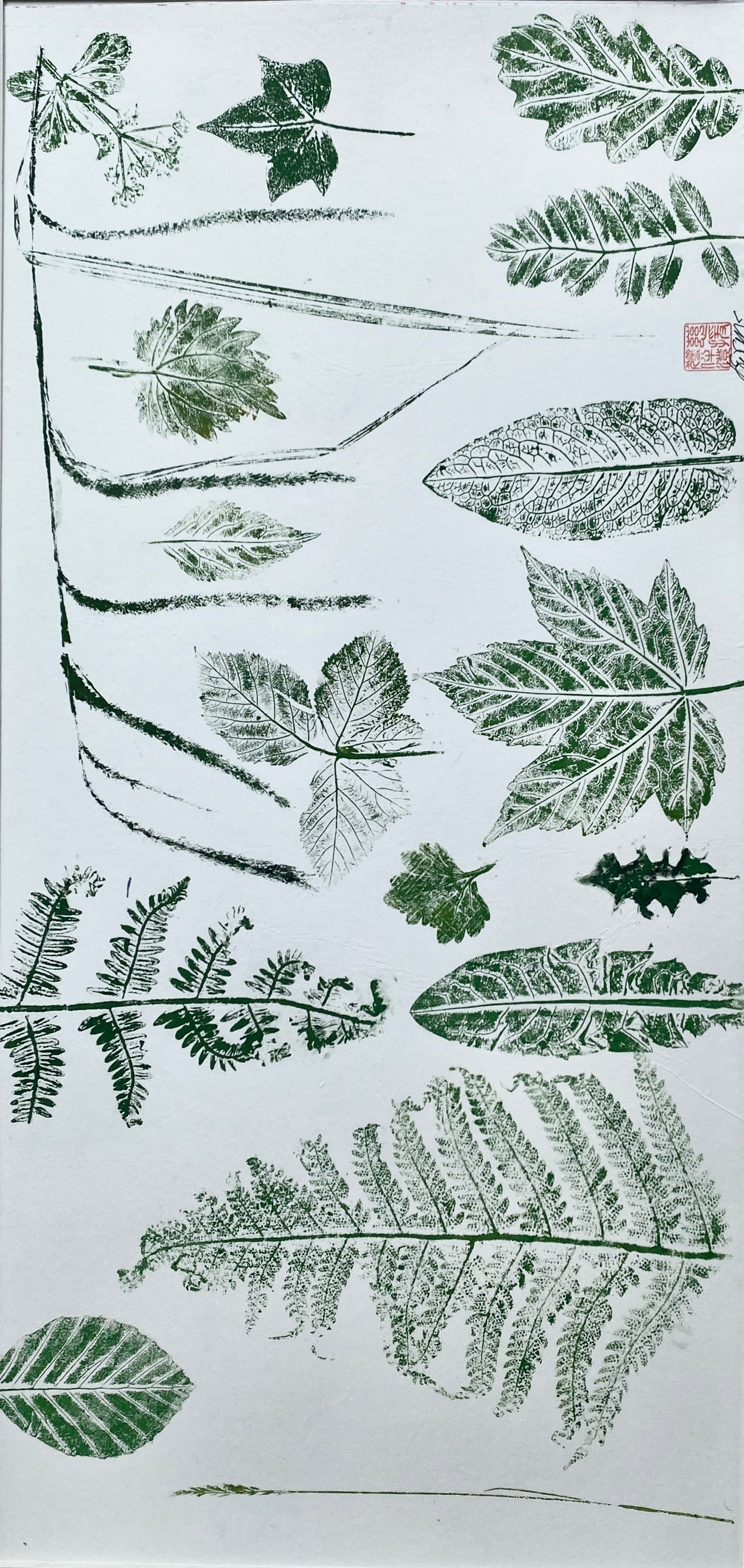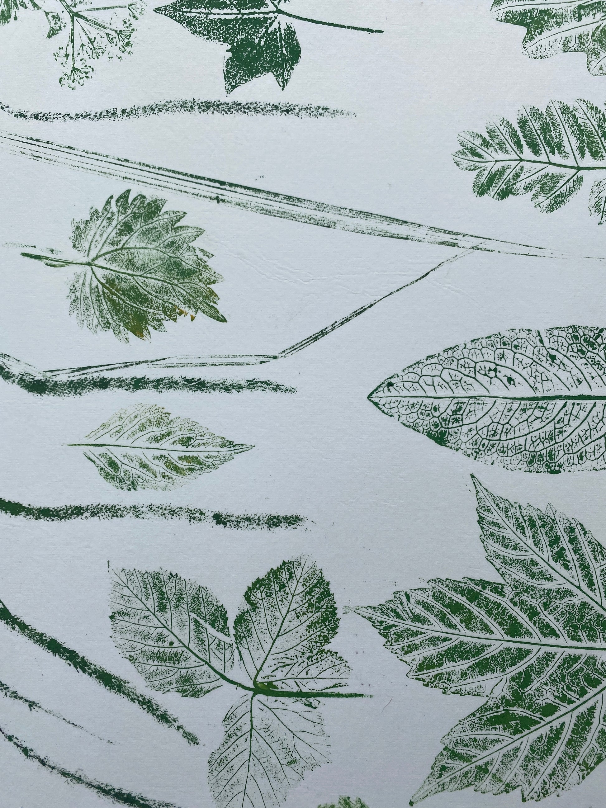I picked up one of each leaf or grass I could see as I headed down the path on this particular day and this print is a result of this gathering.