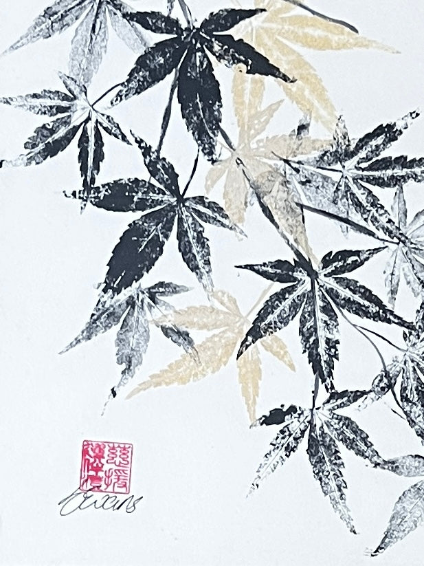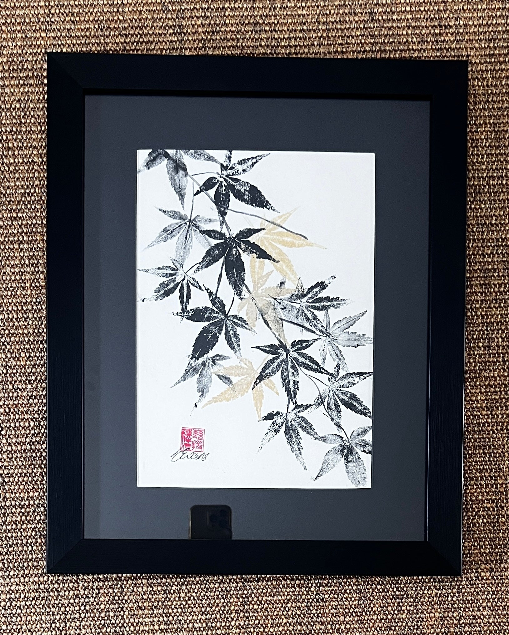 Framed Acer Gyotaku on handmade Japanese Kozo Paper.