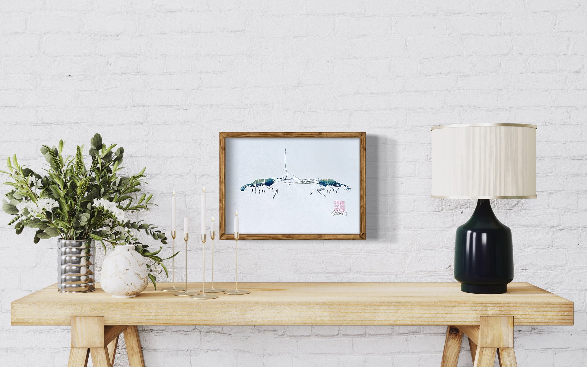 I picked up this prawn from my friend Andy in December, he was clearing down his bait tanks on the Menai and had pulled out half a dozen prawns and a pollock. He gifted me this little guy and he went in the freezer until I had some time after Christmas to get in the studio and print.