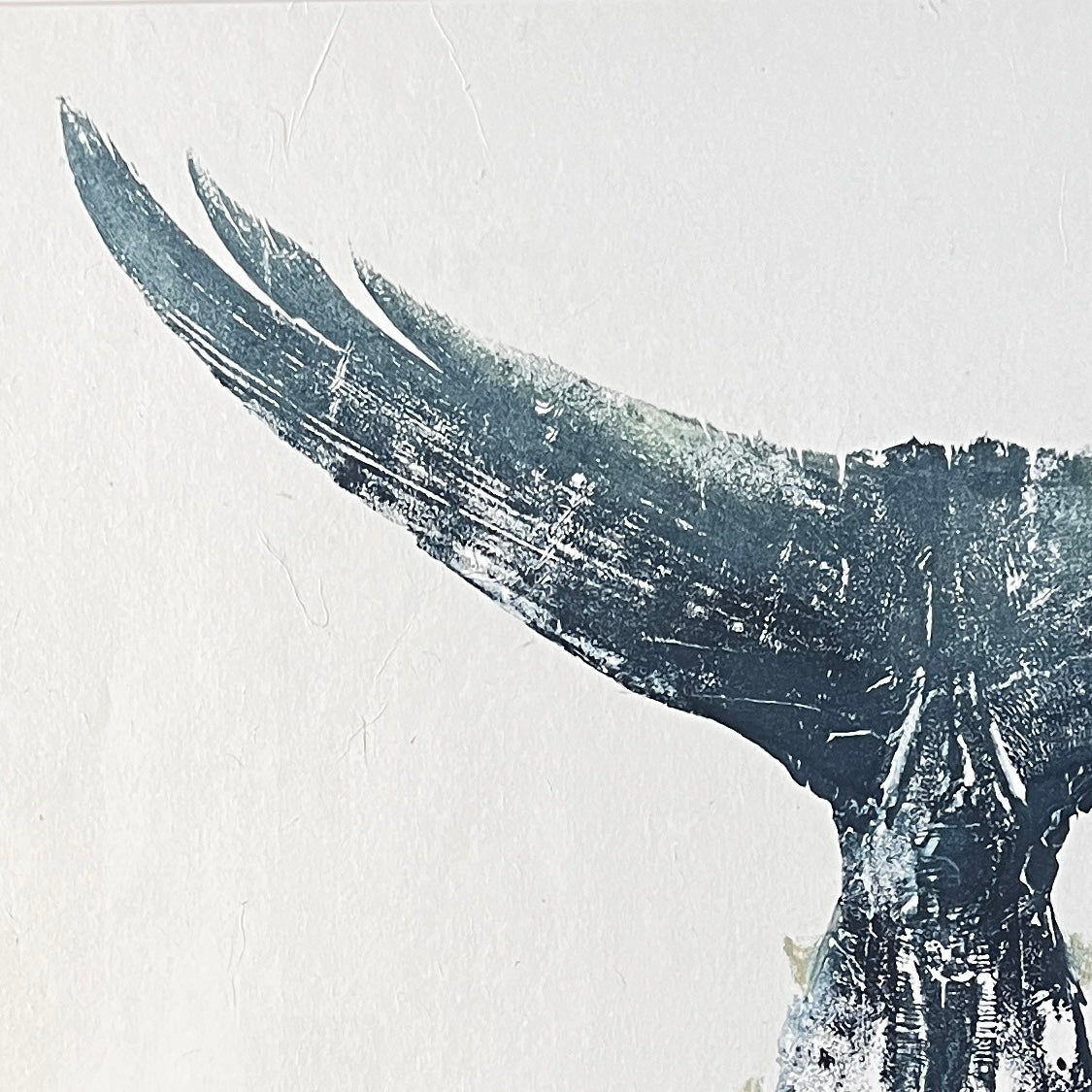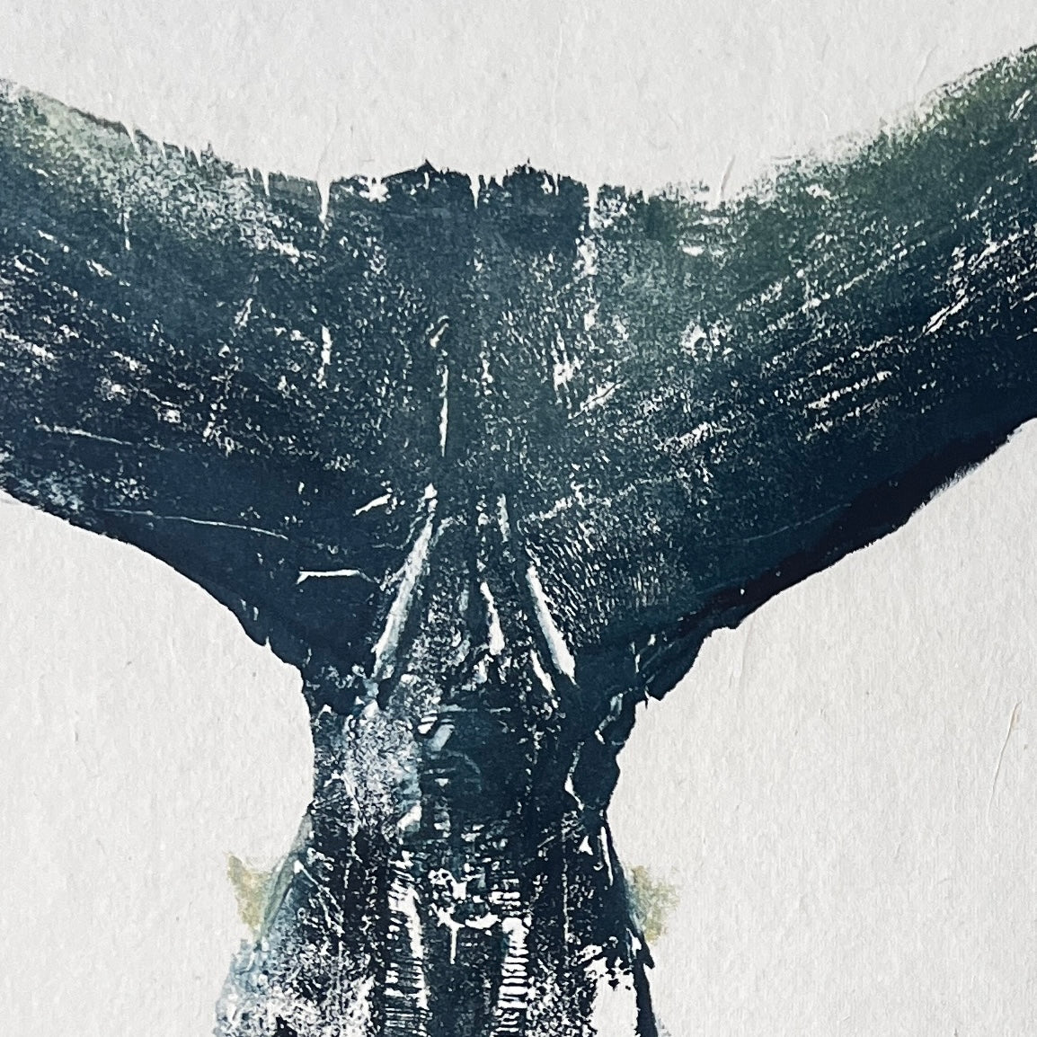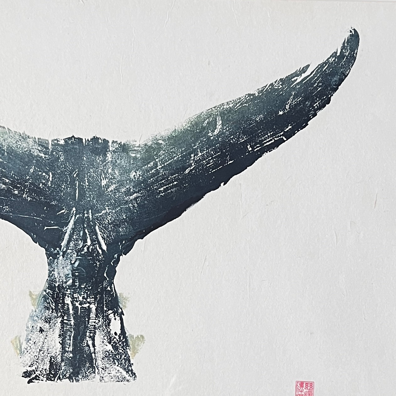 This tuna tail print is on mitsumata measuring approx 80cm x 54cm and is printed in Speedball Acrylic Ink. As with all my work, it has had the second additional step of Urauchi, the Japanese method of backing and flattening a print.
