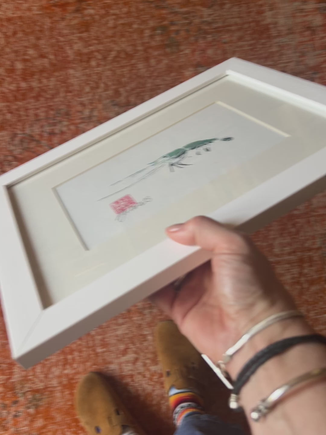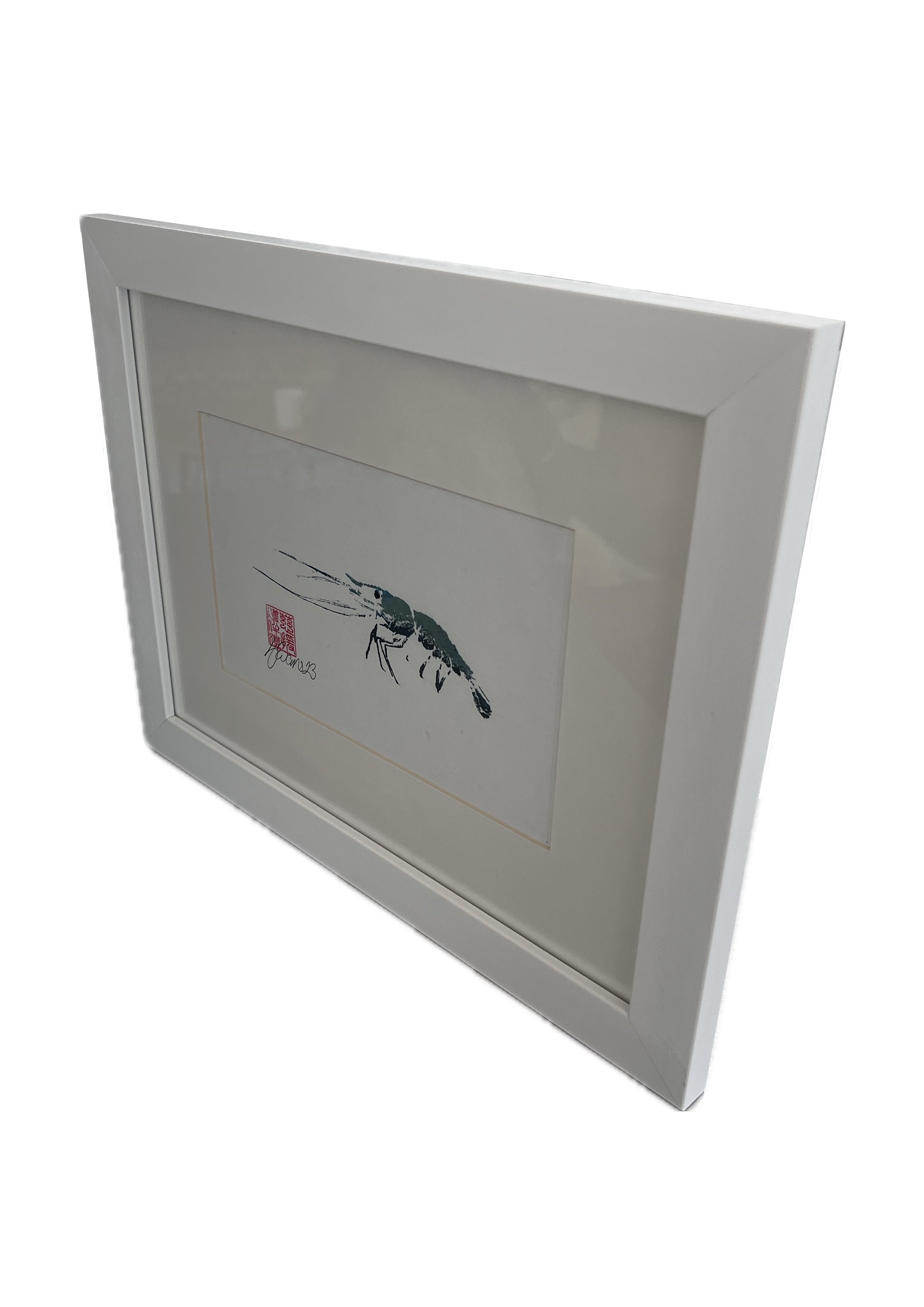 Framed Gyotaku of a Menai Strait Prawn A5