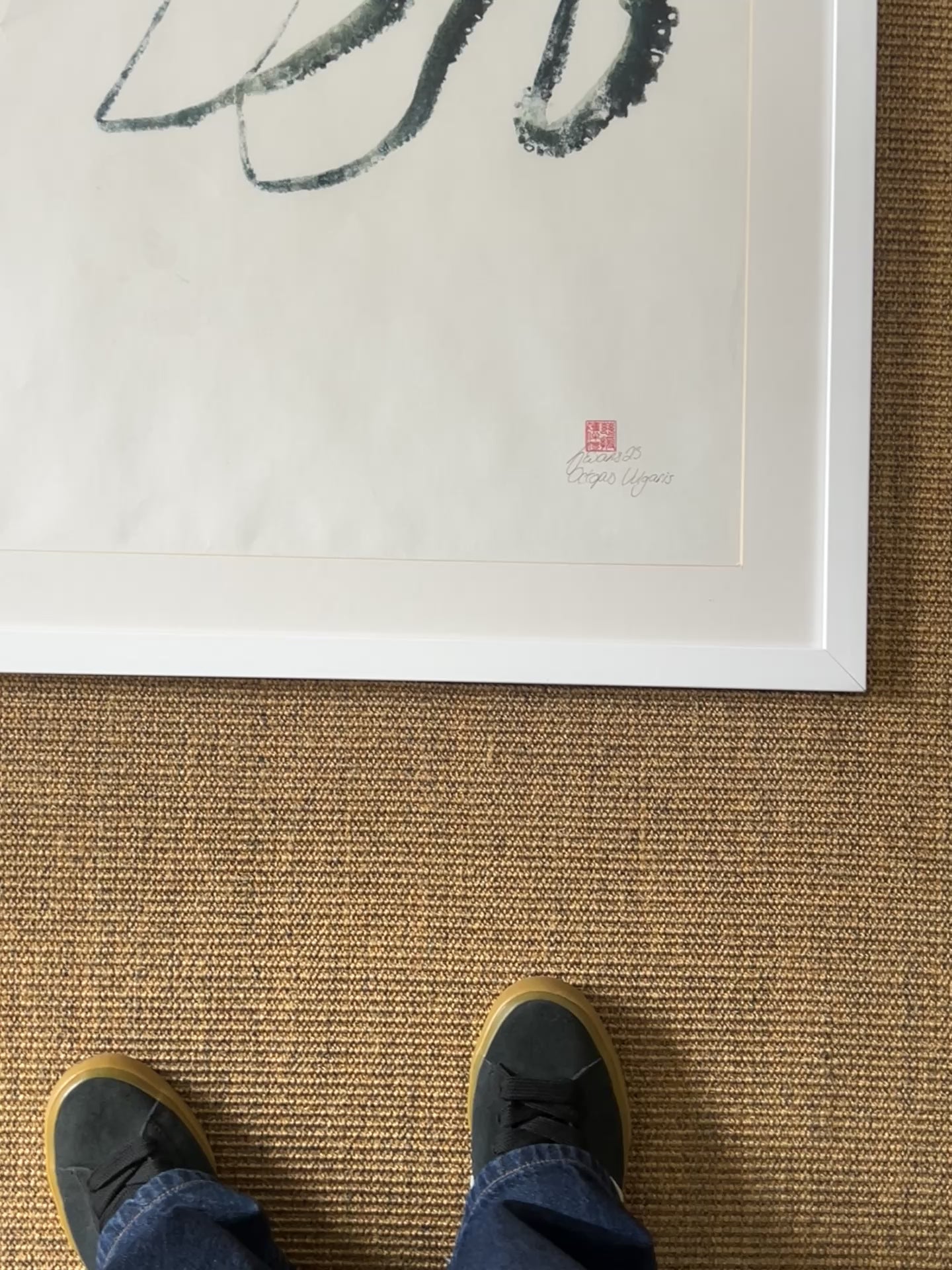 Here I have used a hand made Japanese Mulberry paper and the octopus is off set to one side. After printing I then use the Urauchi method to apply backing paper to make the print frameable. The print has been professionally framed by my framer.