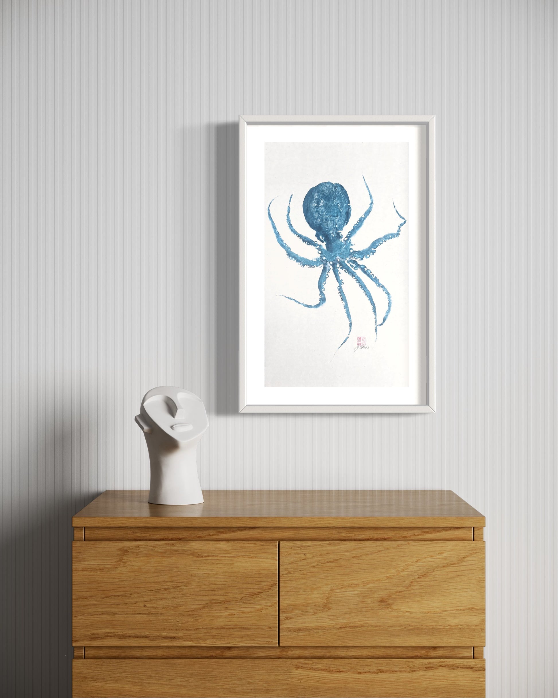 Using Chinese paper and acrylic ink, Jane Evans' gyotaku octopus prints are created with the utmost care and attention to detail. Each print is a unique. This print measures 59x34cm