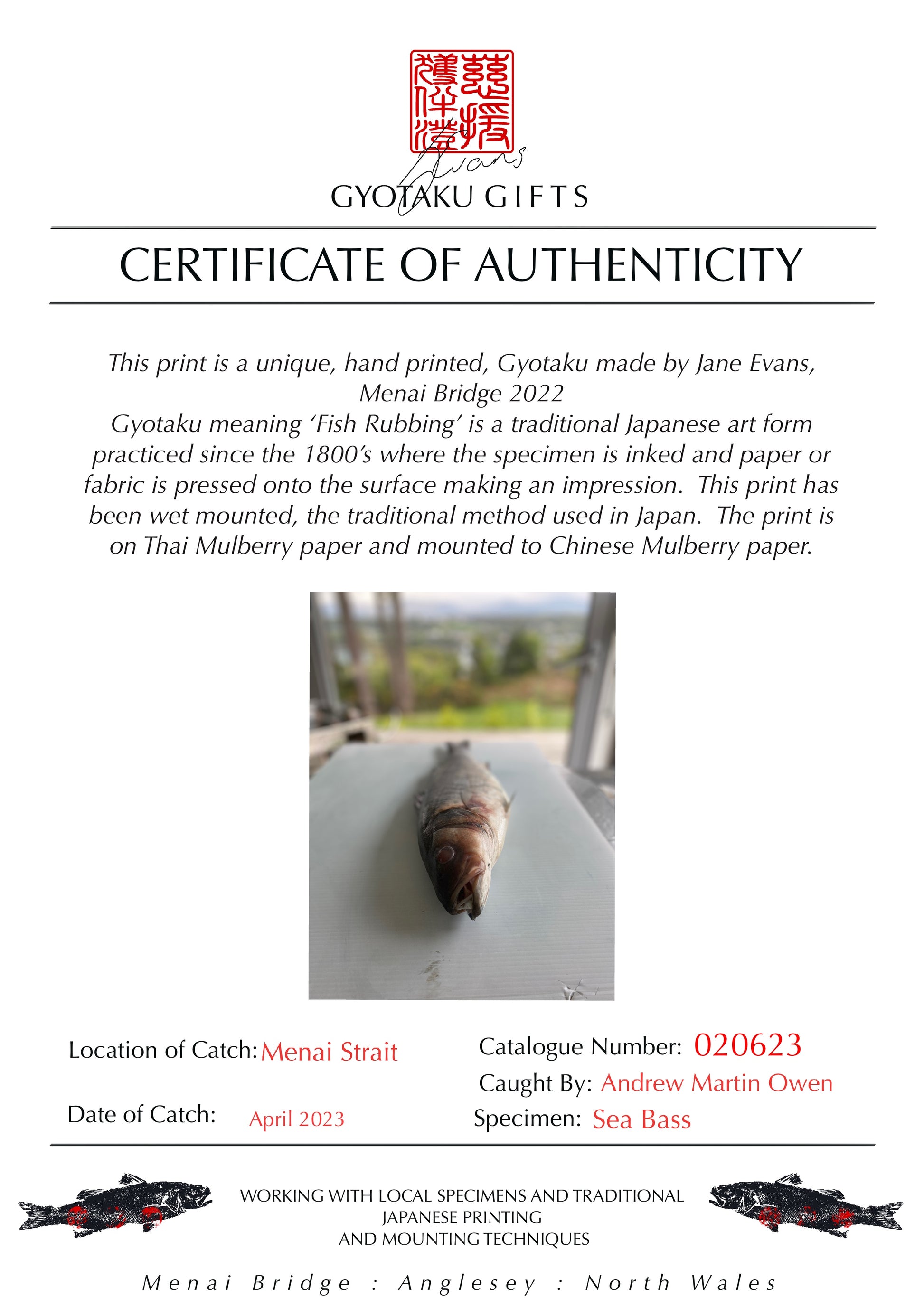 No two prints are ever the same in Gyotaku as the specimen is re inked before each print is taken.