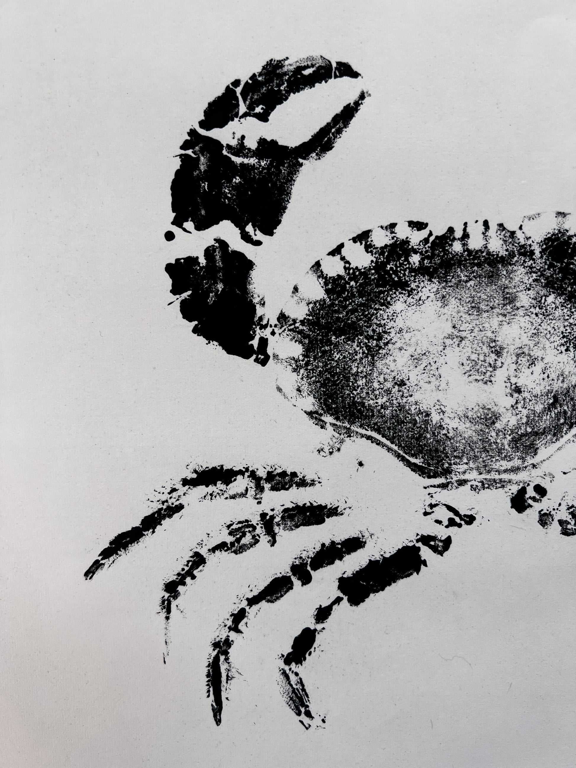Crab is quite a difficult specimen to print from.  Like a lobster it's much more 3 dimensional than a fish so there is a lot of work to do making things don't slip and slide around.