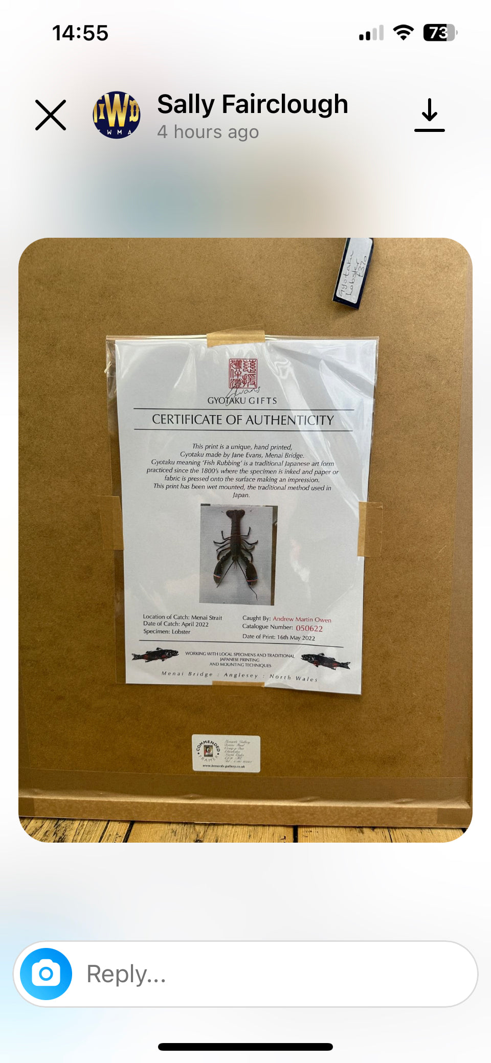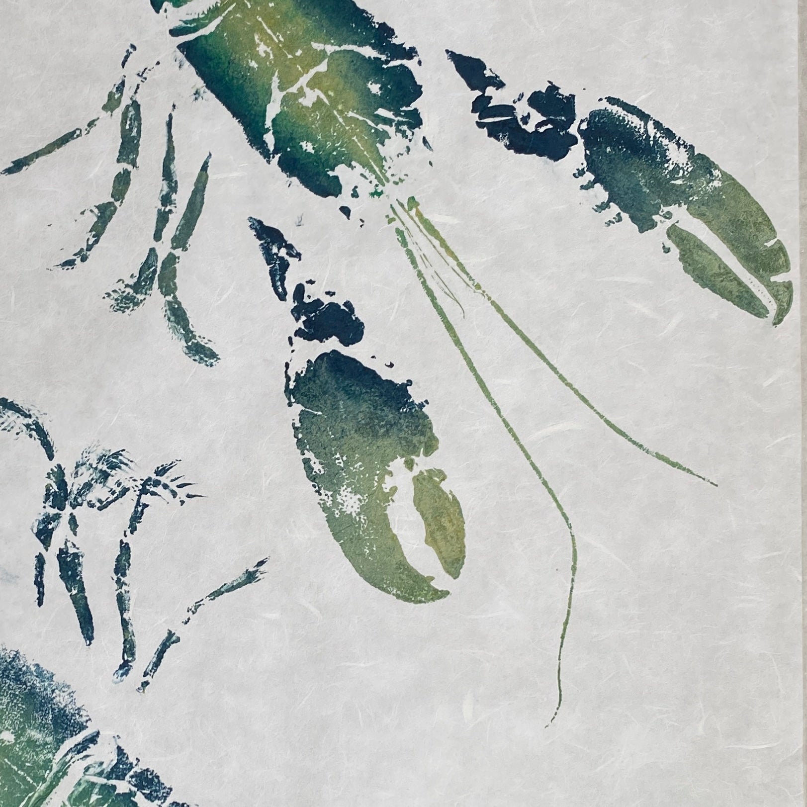 Menai Strait Lobsters, Gyotaku Printed and Wet Mounted.