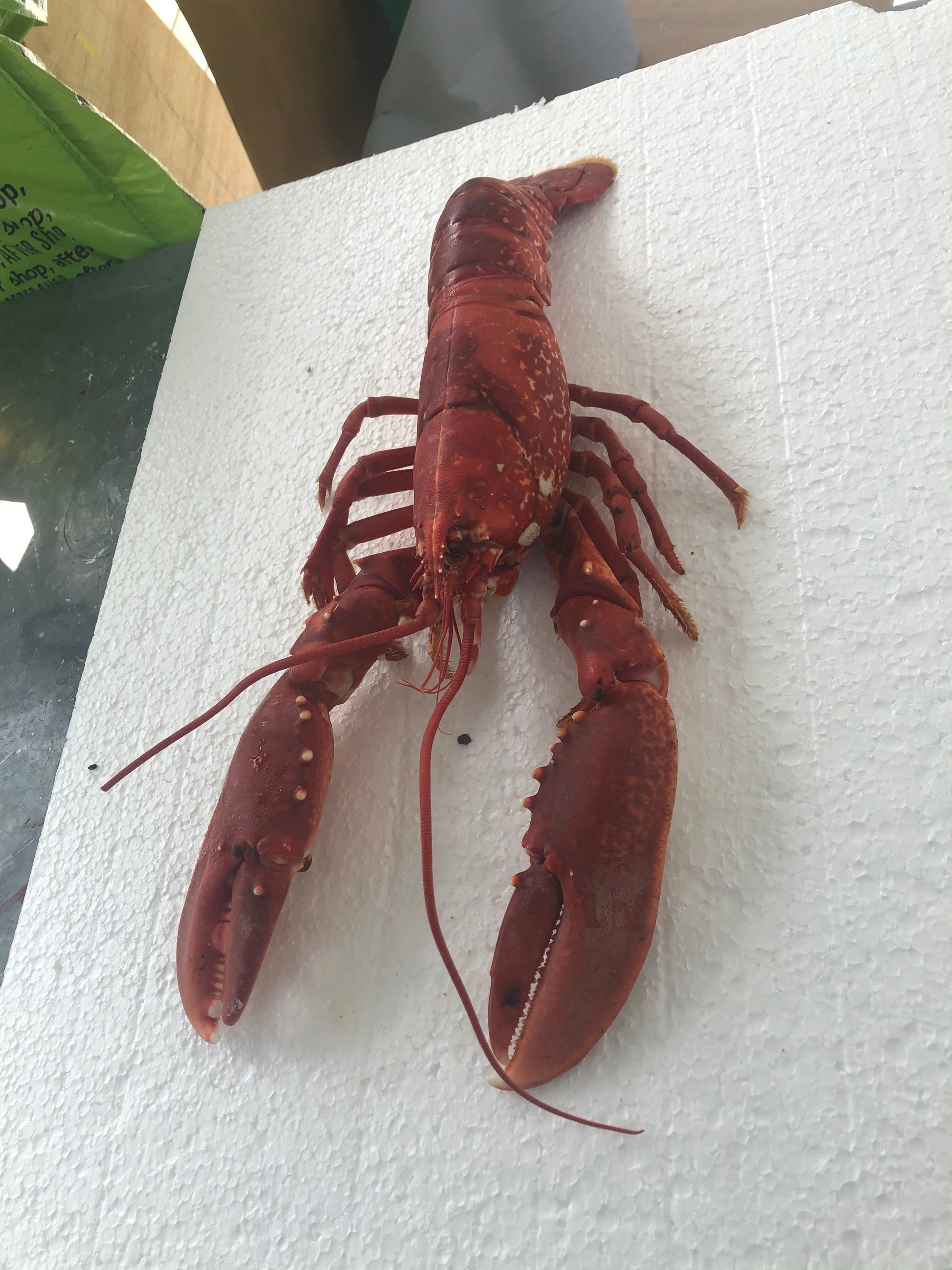 This lobster was caught in a pot by a local fisherman here in North Wales. It was caught in the Menai Stait.