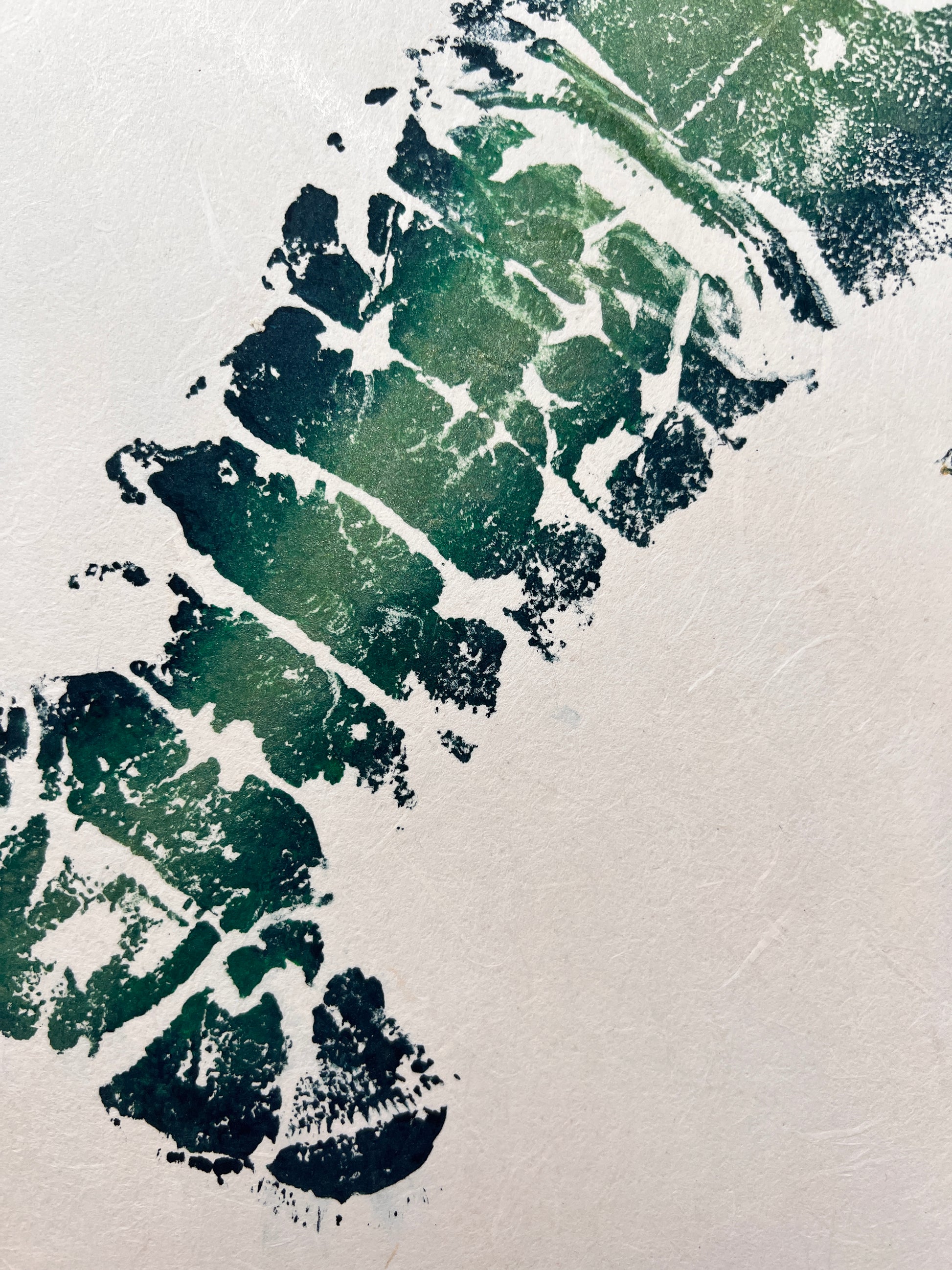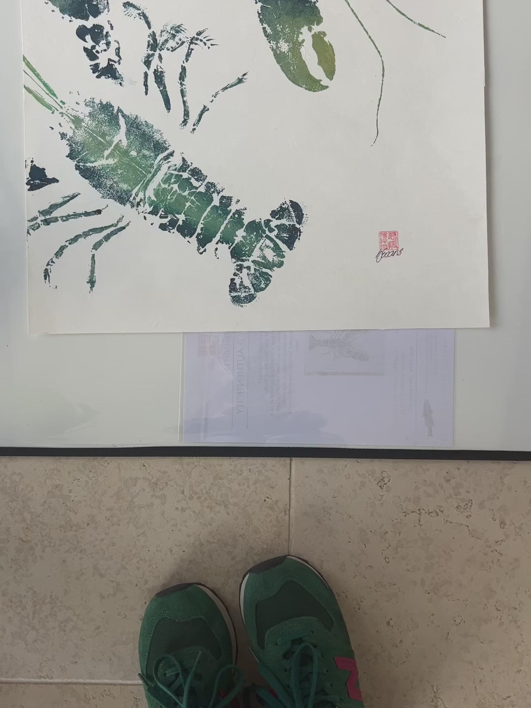 Lobster are a challenge to print as they are so 3 dimensional. Its very tricky printing the legs and their antenna. These lobsters are both printed from the same lobster on Thai mulberry paper measuring 76x51cm.