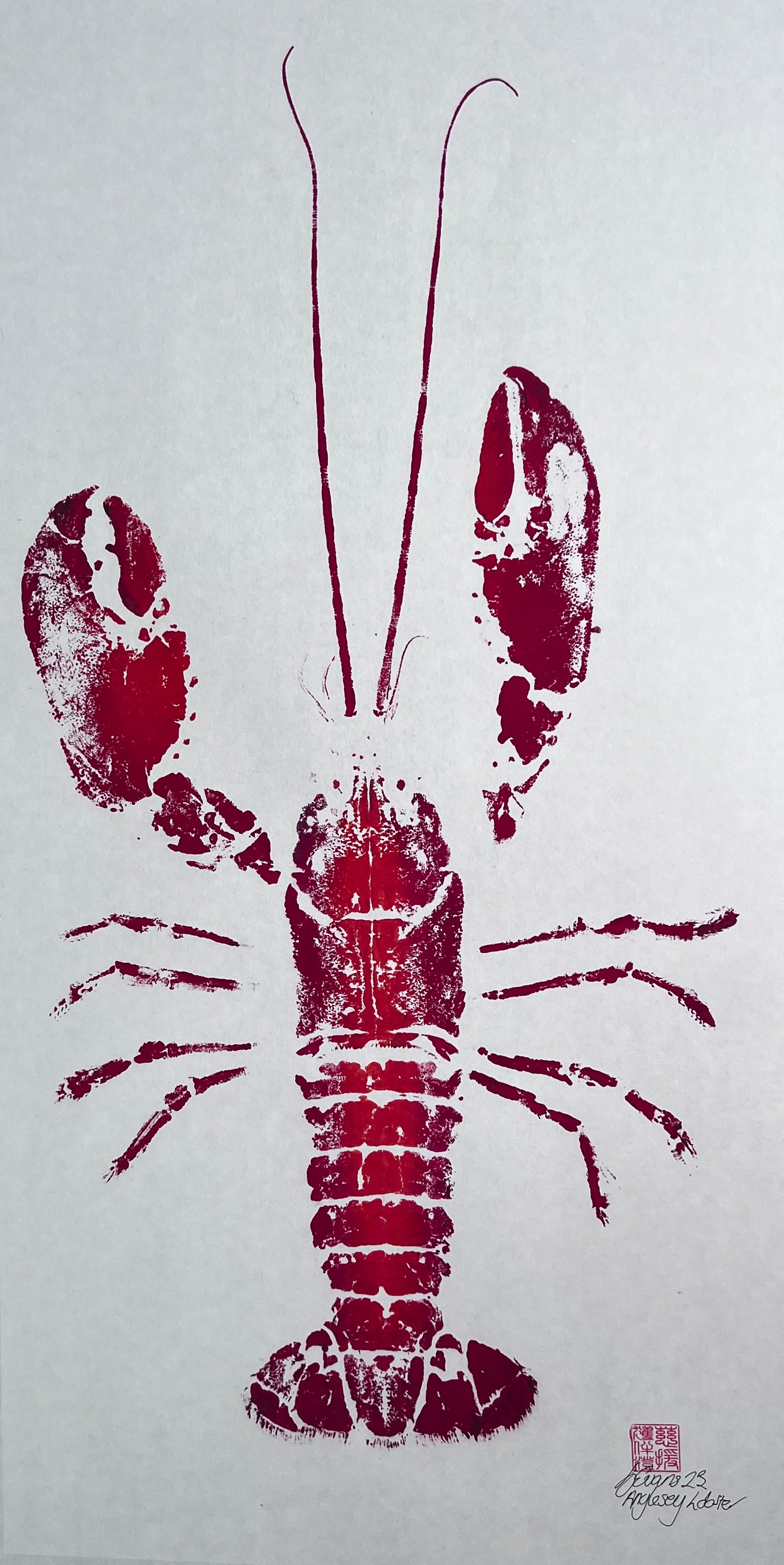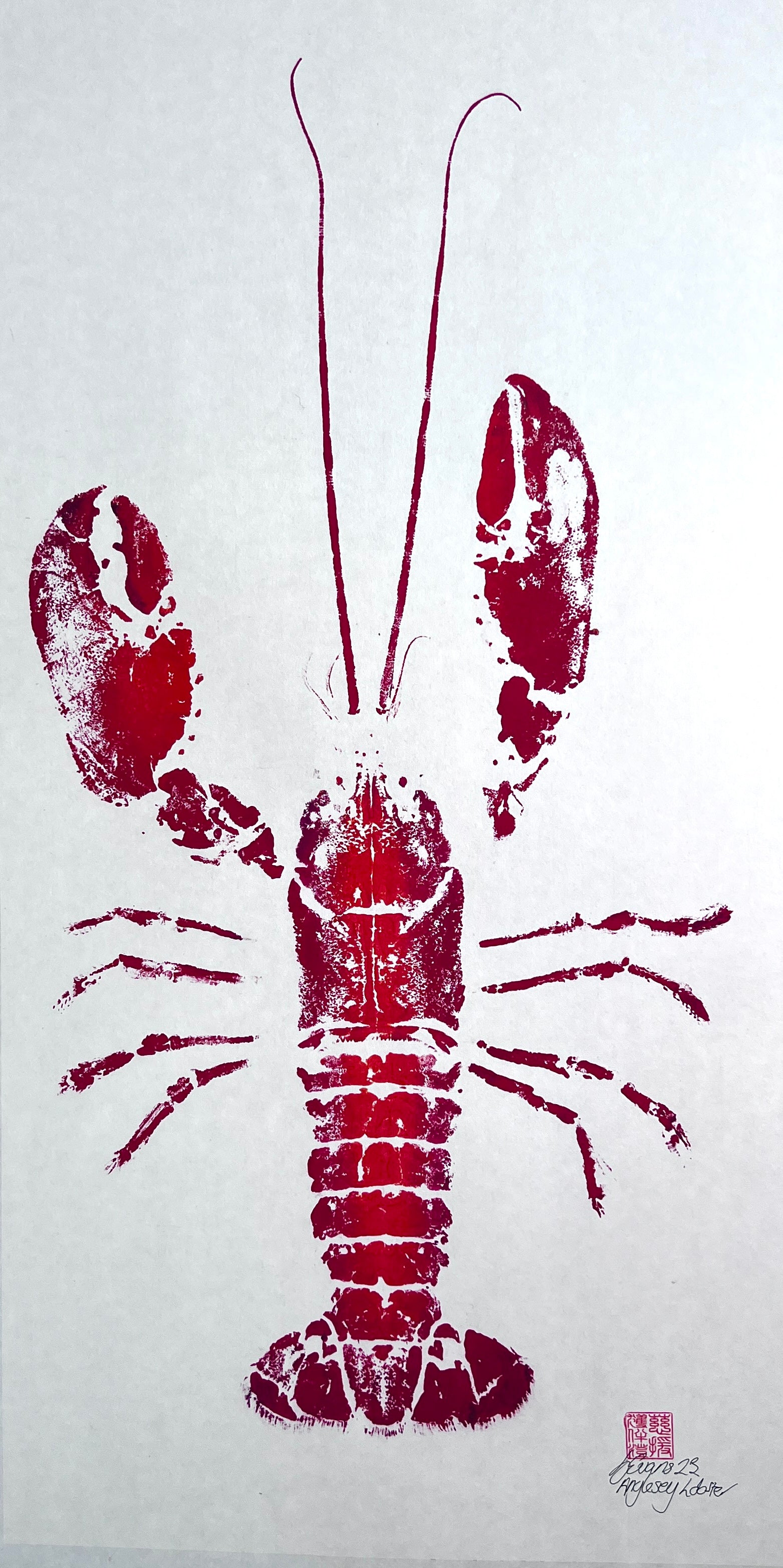 Menai Strait Lobster, Gyotaku Printed in Red ink