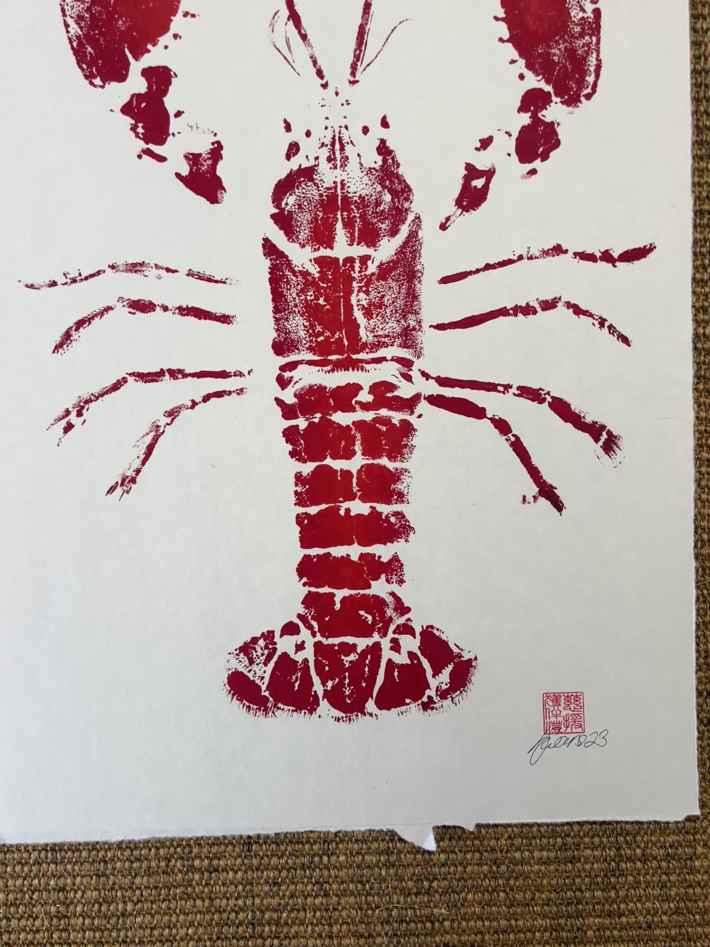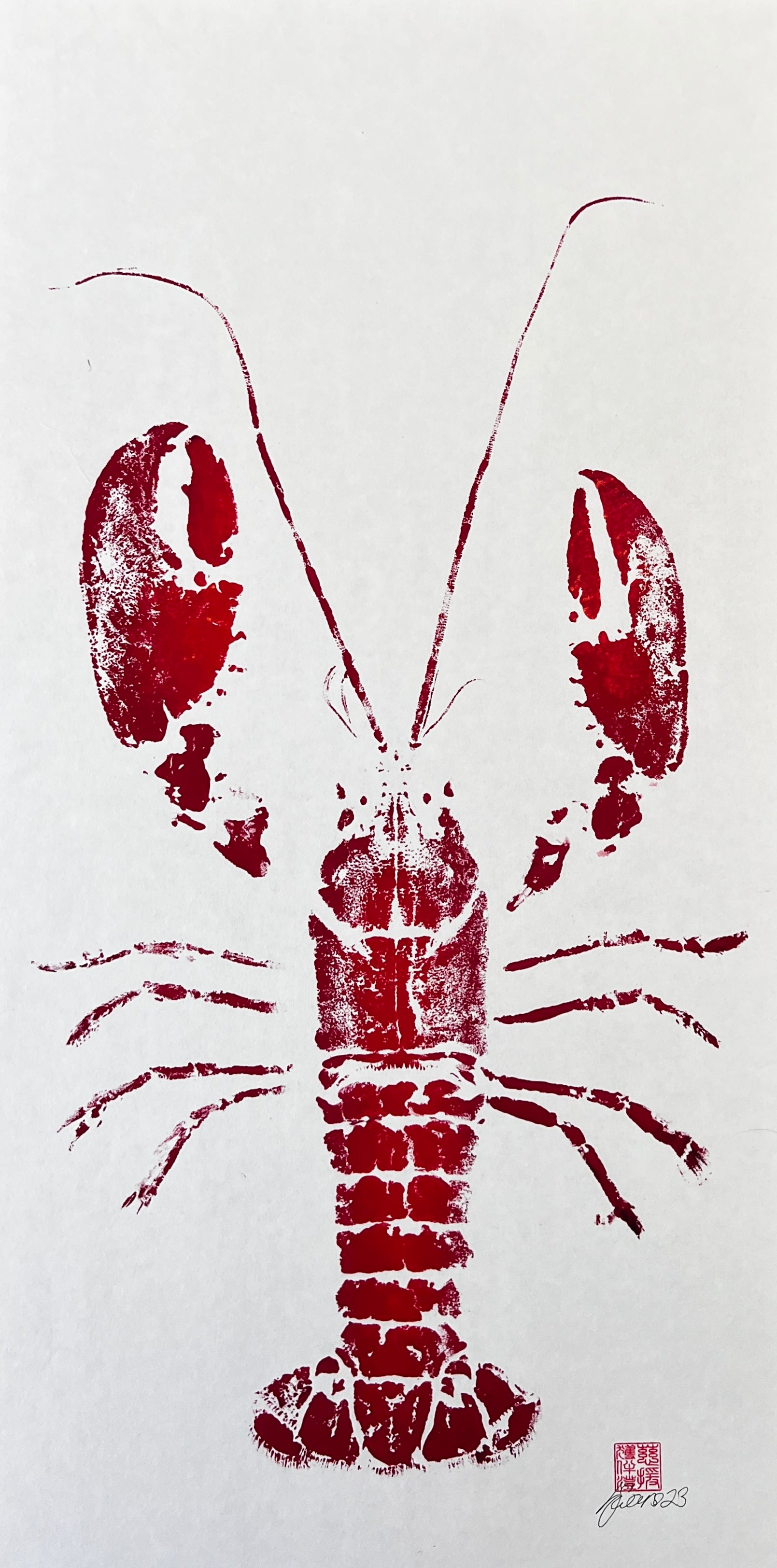 Menai Strait Lobster, Gyotaku Printed in Red ink.