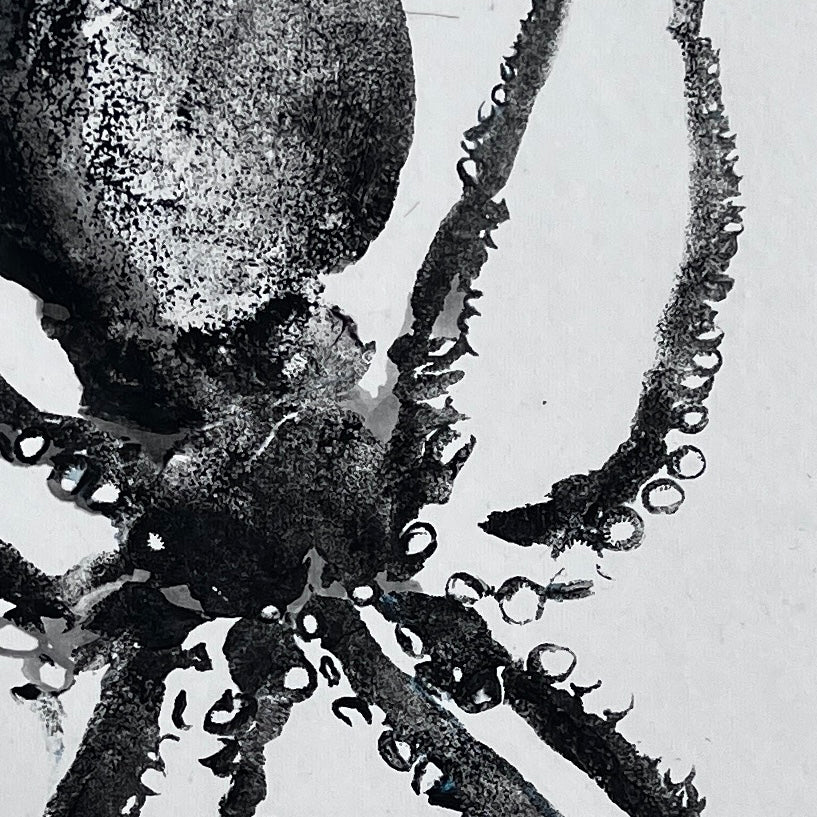 Gyotaku is an ancient Japanese art form that involves making prints of fish or other sea creatures using ink and paper. Anglesey artist Jane Evans has taken this traditional art form and applied it to the unique and fascinating creature of the sea, the octopus.