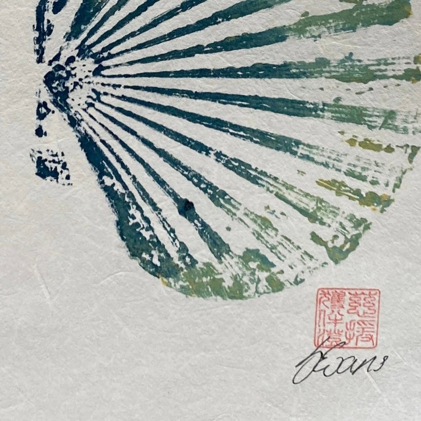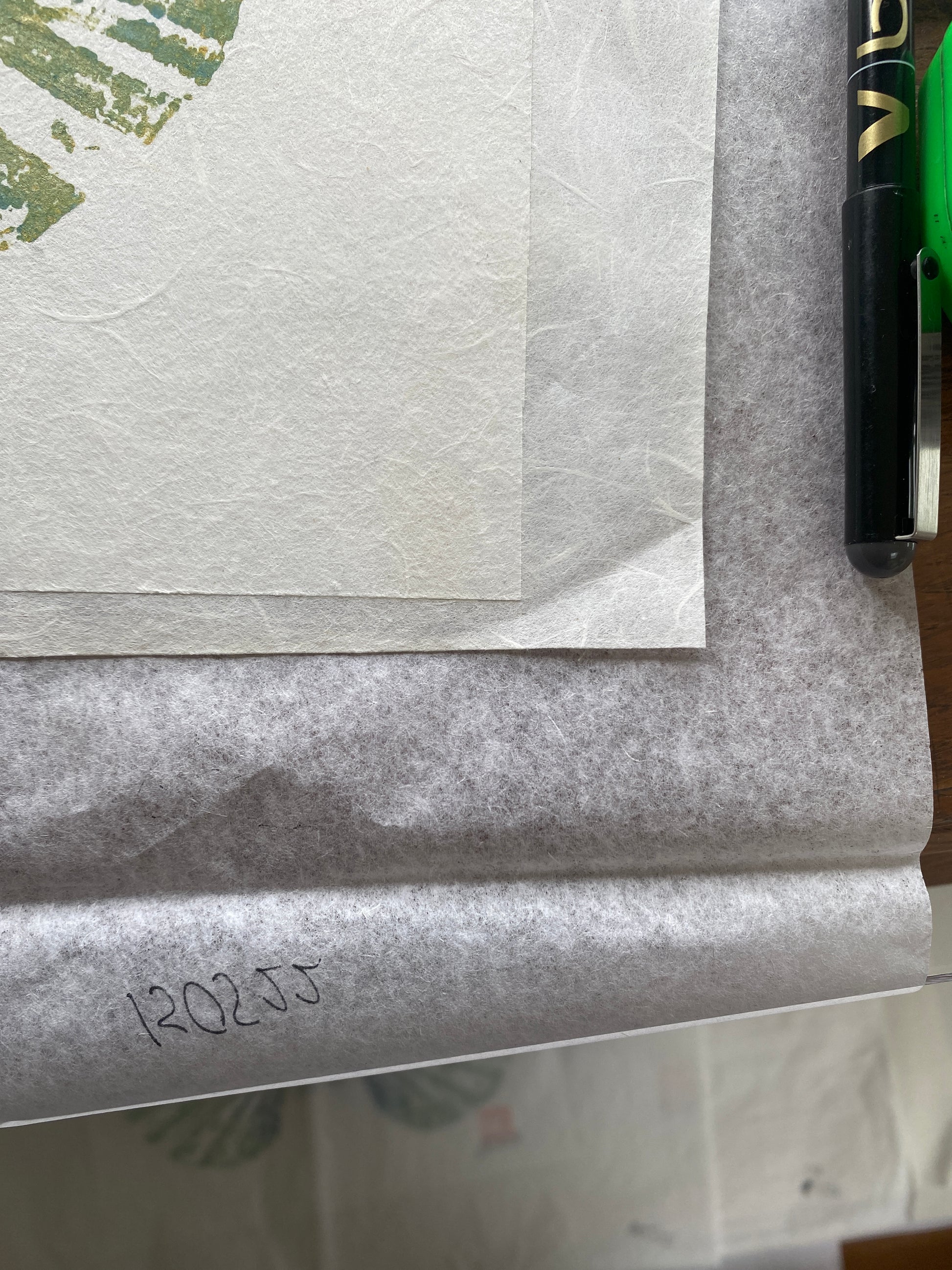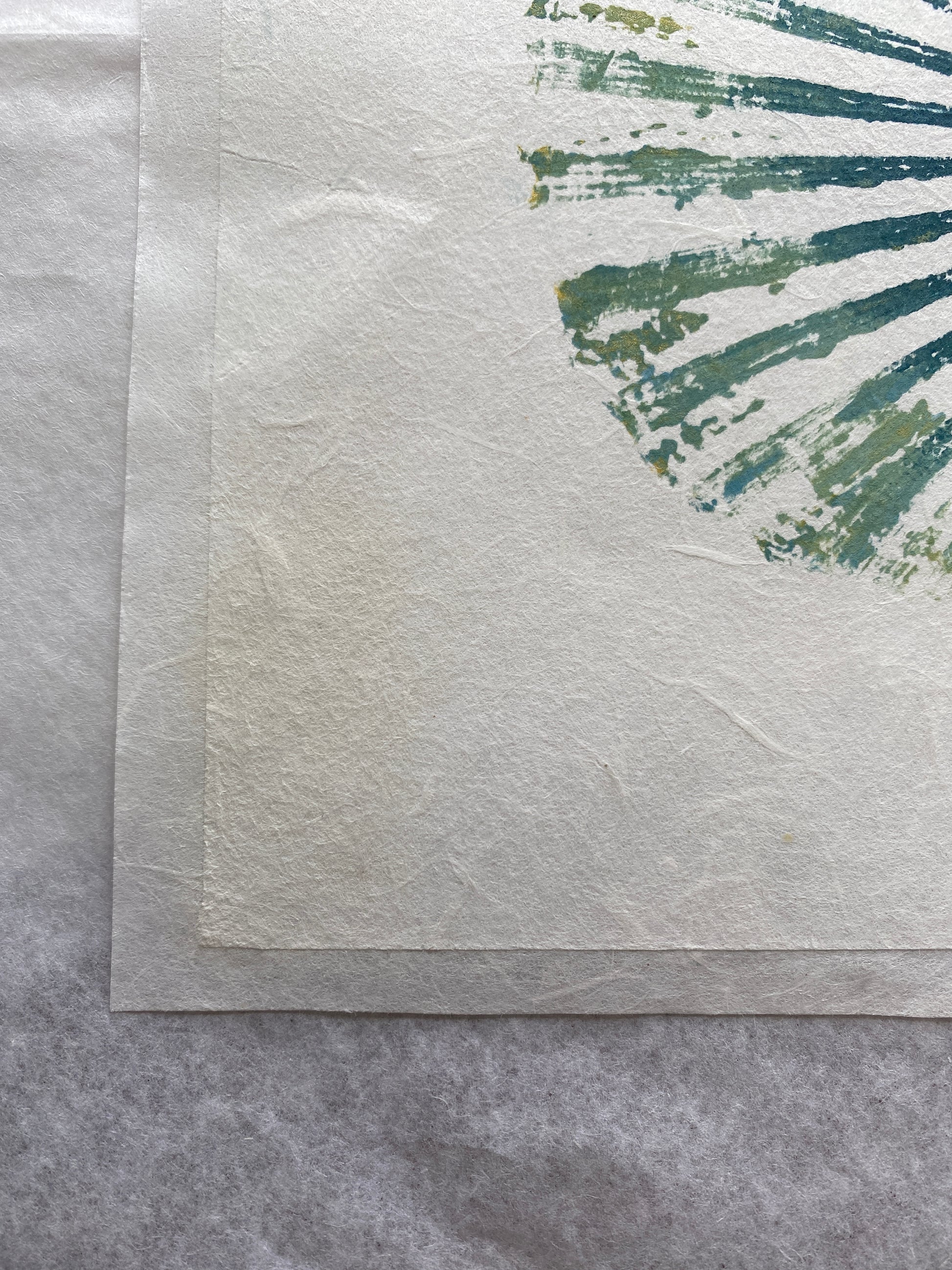 Printing requires pushing the paper into the grooves and it's difficult to achieve a great print. This print measures 35x25cm and is on Thai Mulberry paper and has been mounted using the authentic Japanese wet mounting technique which uses a simple flour and water paste and requires a period of around 24 hours to dry and stretch.