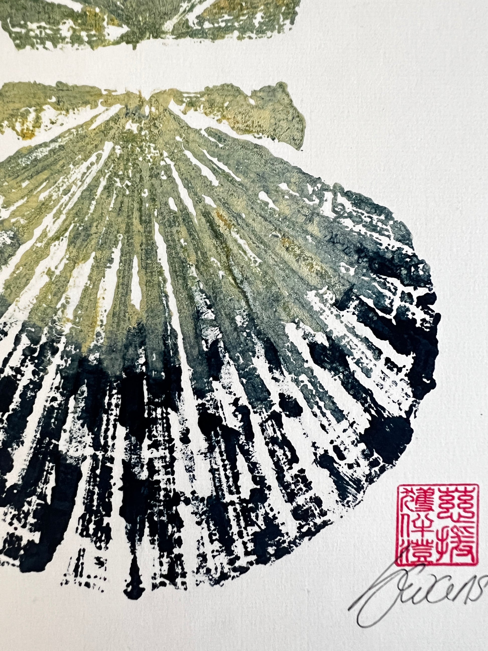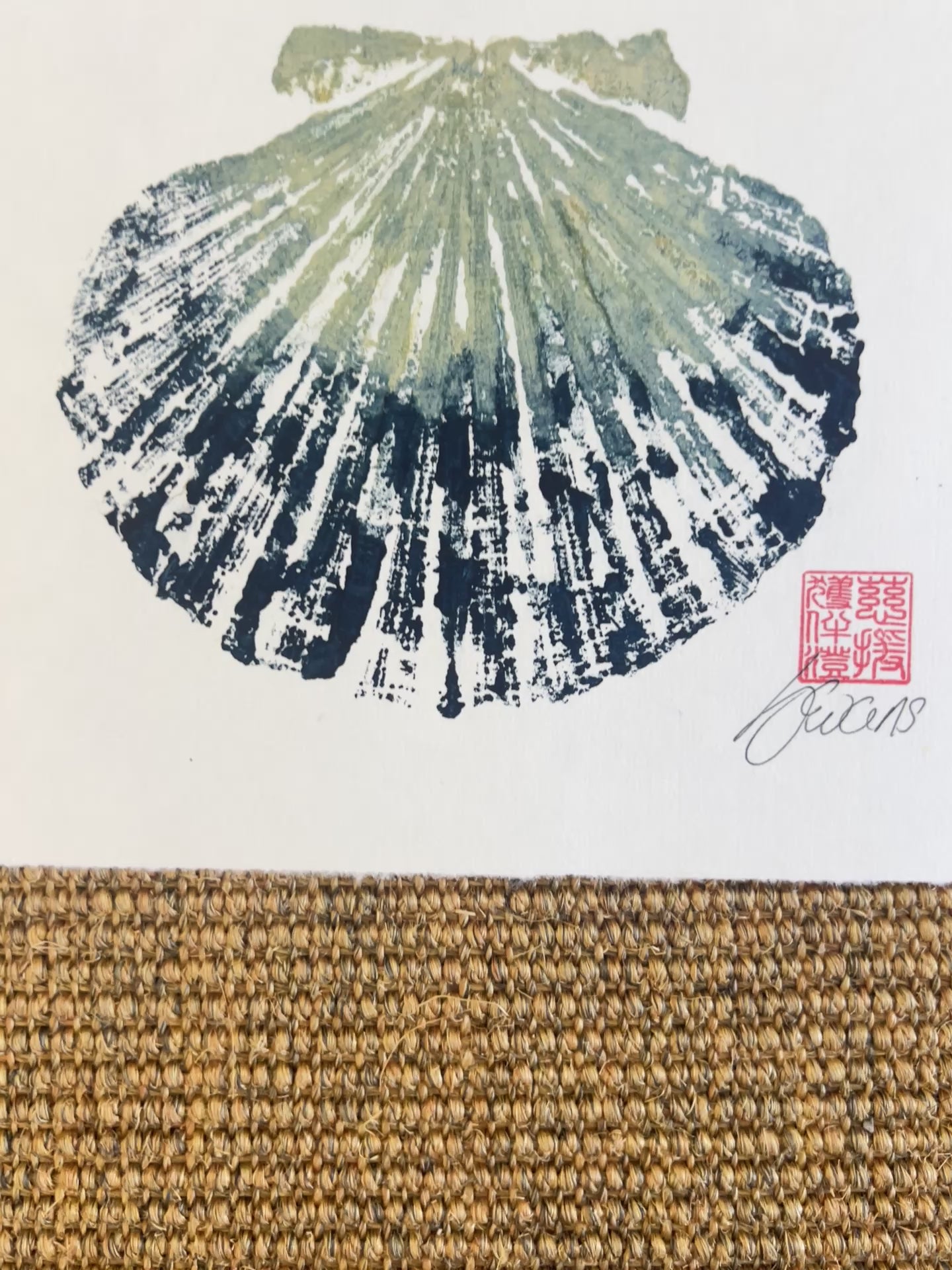 Printing requires pushing the paper into the grooves and it's difficult to achieve a great print.  This print is A4 in size and is on Chinese Mulberry paper and has been mounted using the authentic Japanese wet mounting technique which uses a simple flour and water paste and requires a period of around 24 hours to dry and stretch.