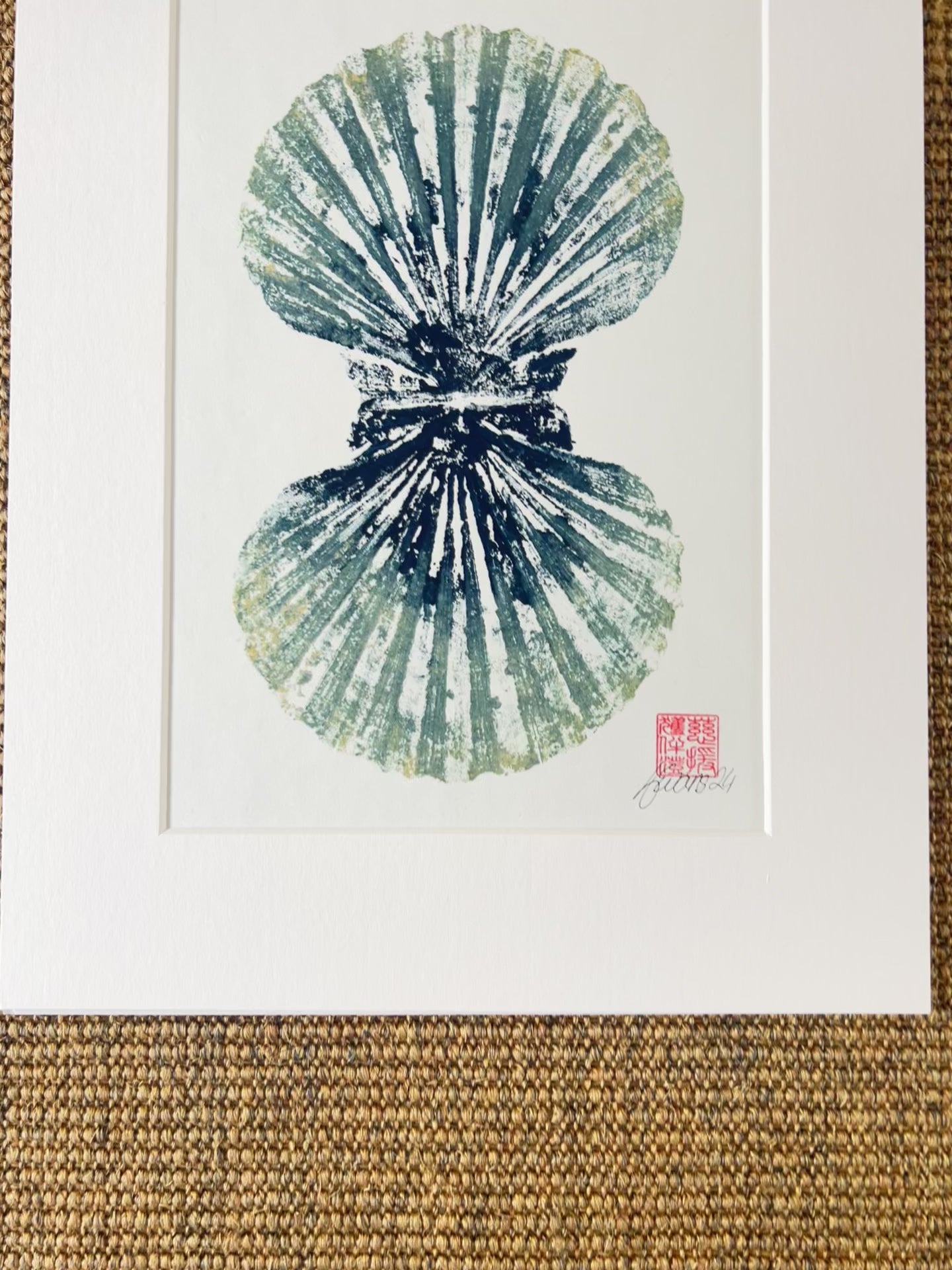 Printing requires pushing the paper into the grooves and it's difficult to achieve a great print. This print is A4 in size and is on Chinese Mulberry paper and has been mounted using the authentic Japanese wet mounting technique which uses a simple flour and water paste and requires a period of around 24 hours to dry and stretch.