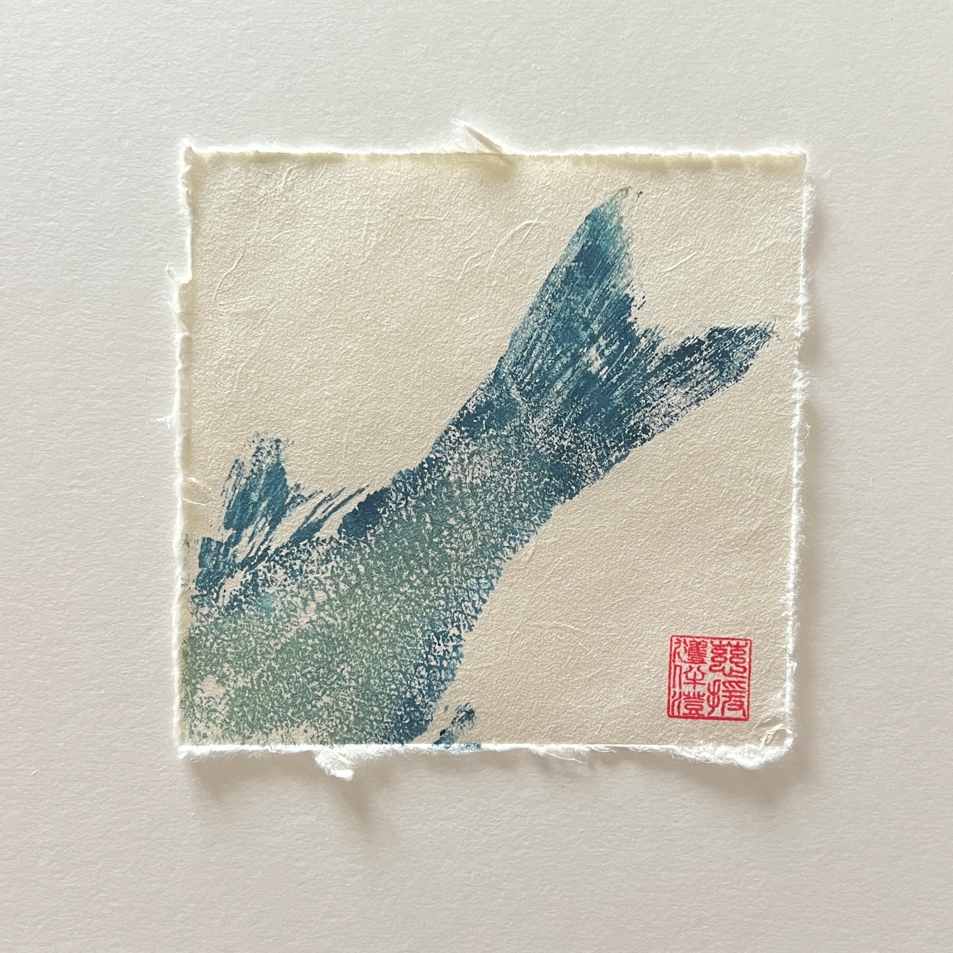 Sea Bass Tail Mini Print – Blue & Gold on Thai Mulberry Paper