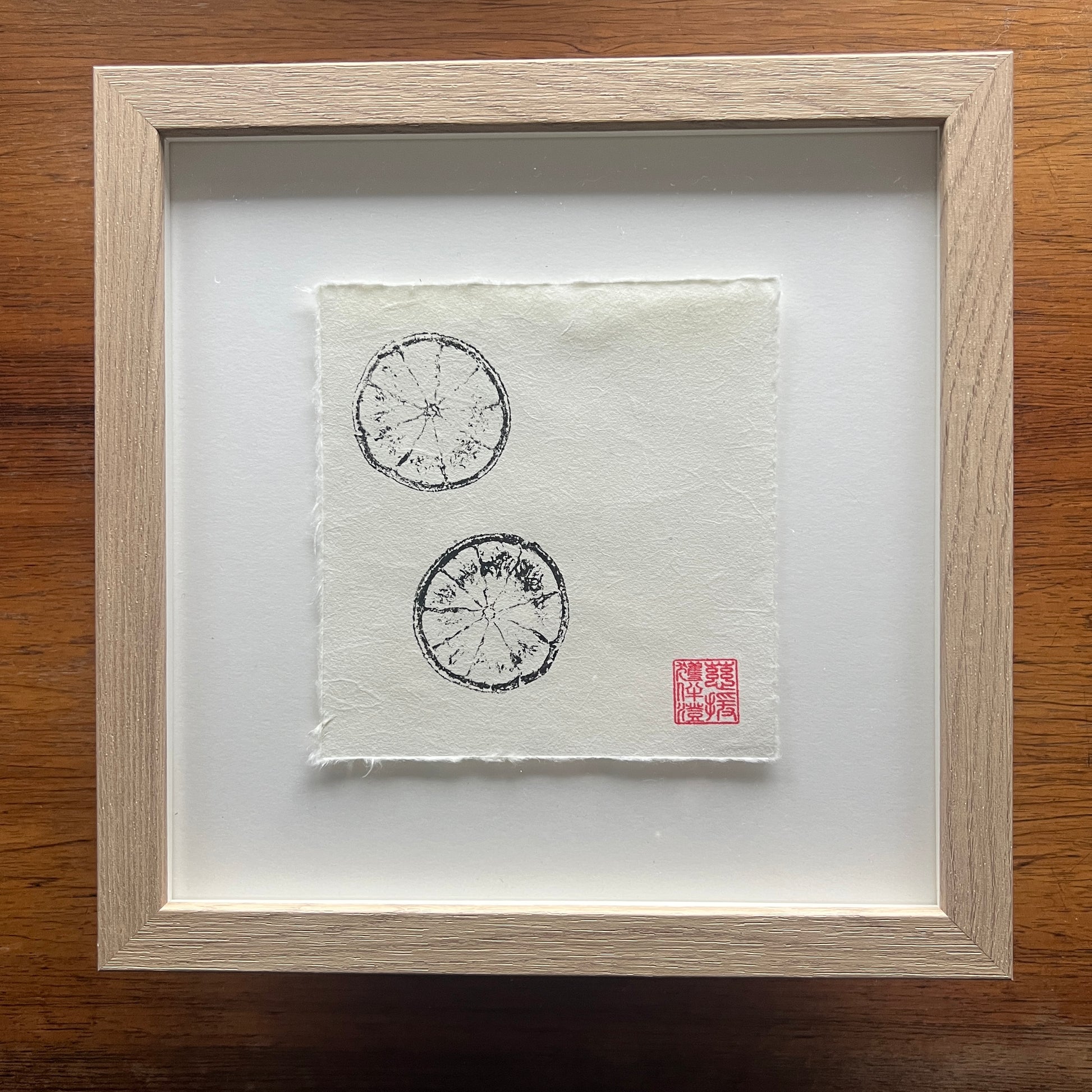 Two Slices of Lemon Mini Print – Black Ink on Thai Mulberry Paper