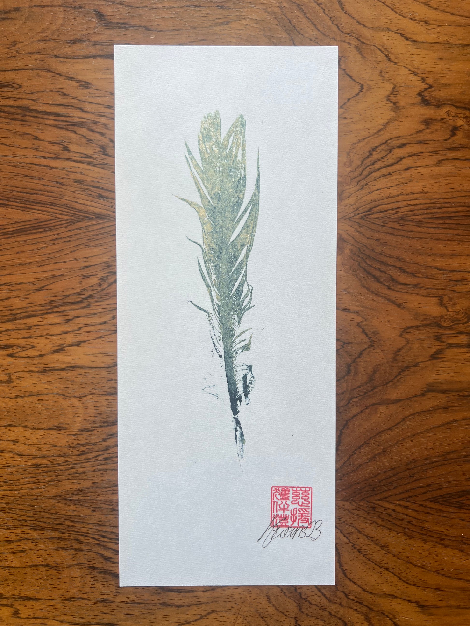 Small Bird Feather – Gyotaku Print by Jane Evans