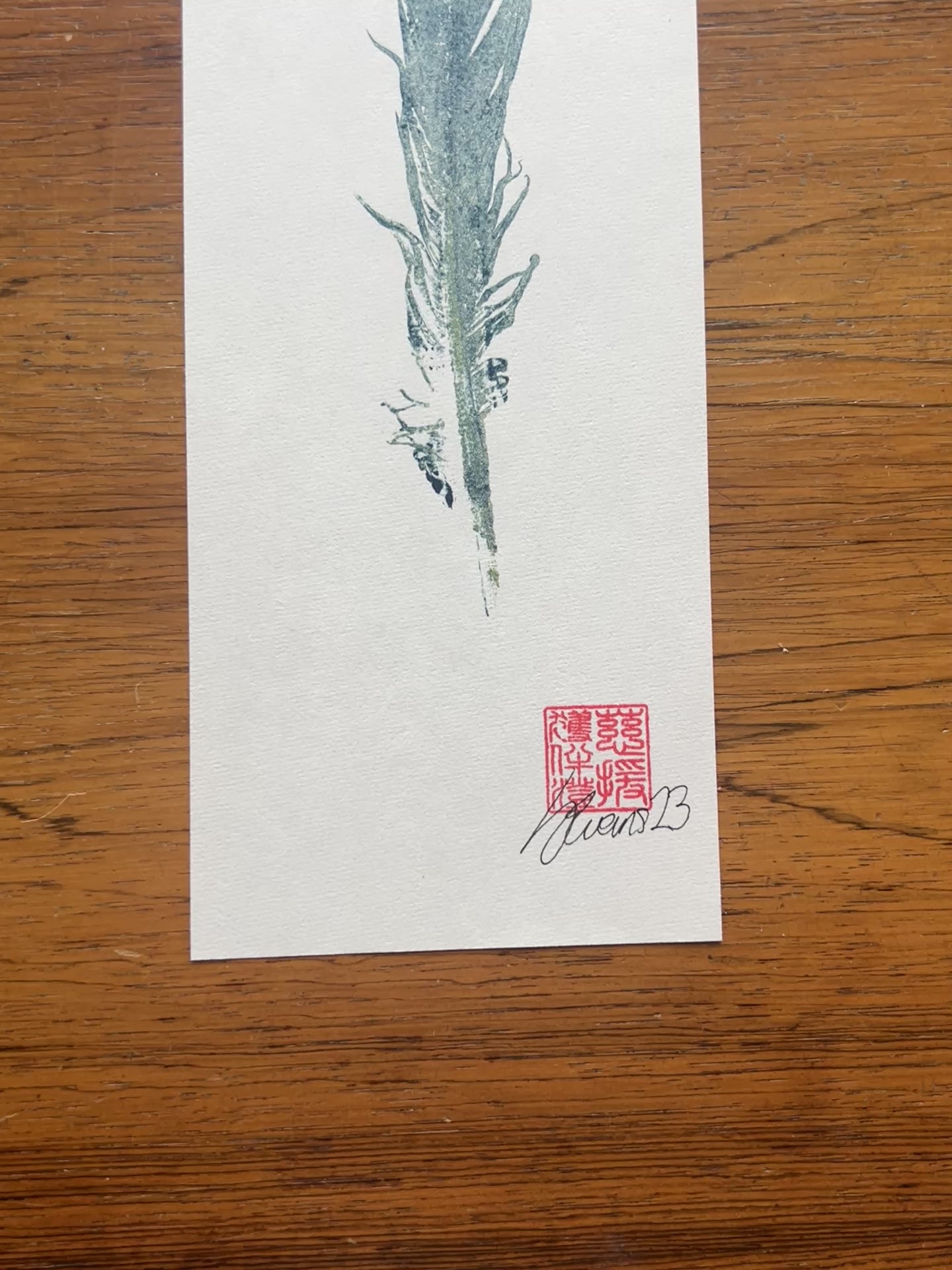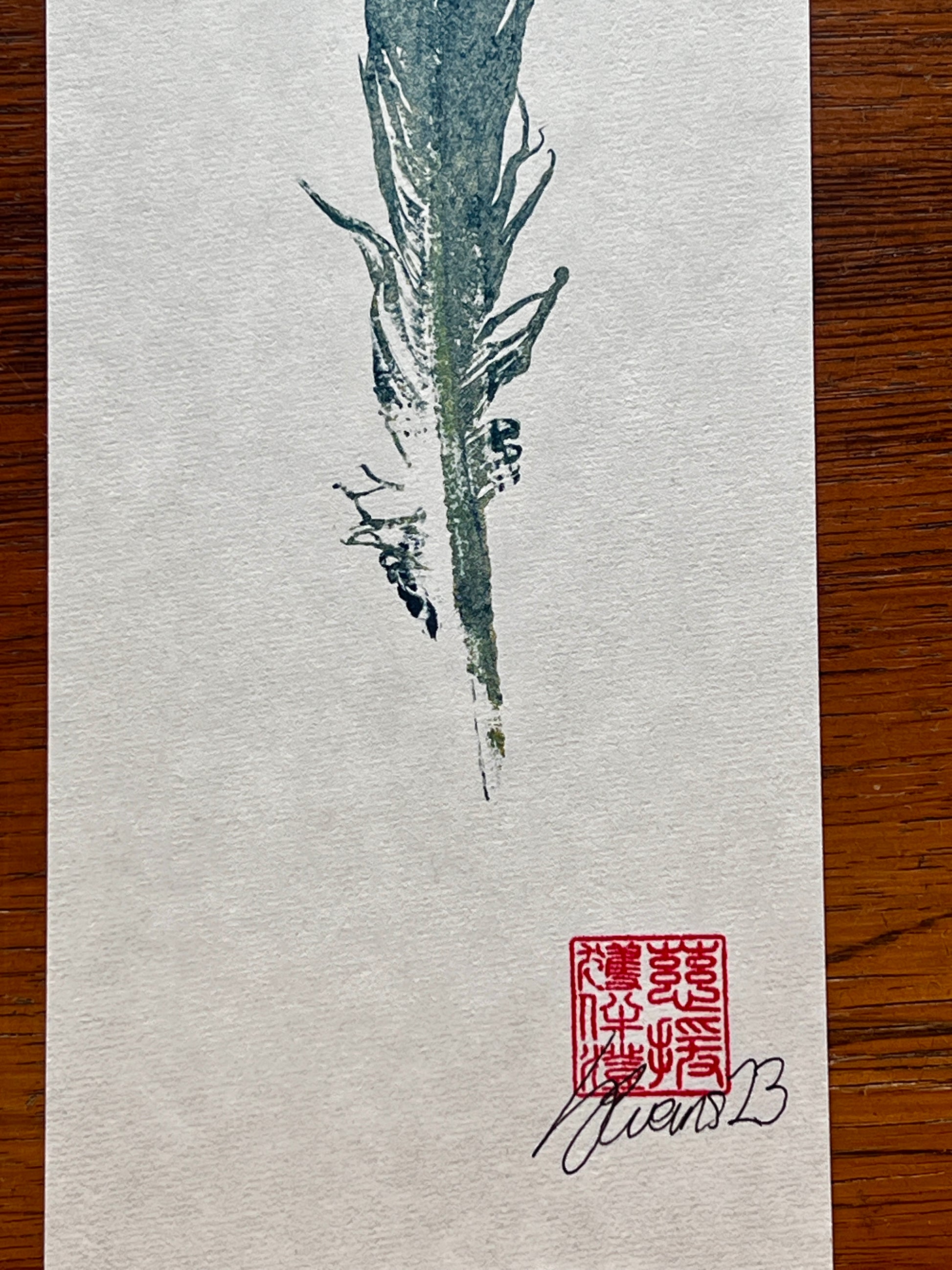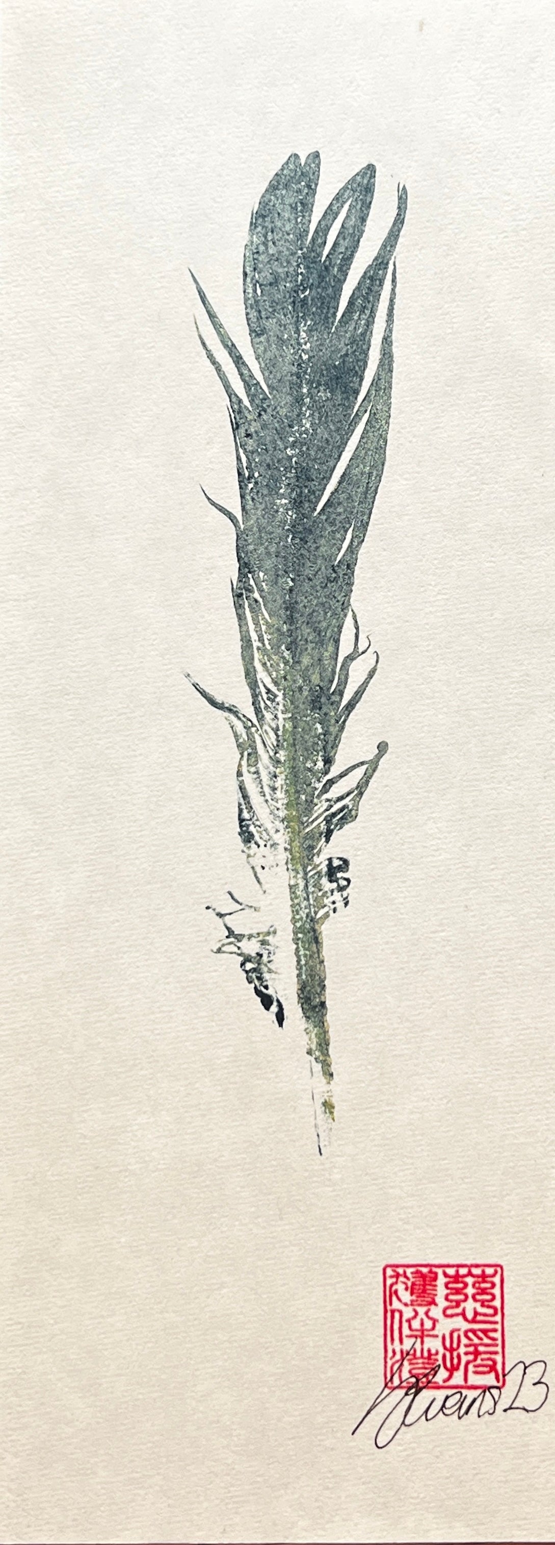 Small Bird Feather – Gyotaku Print by Jane Evans