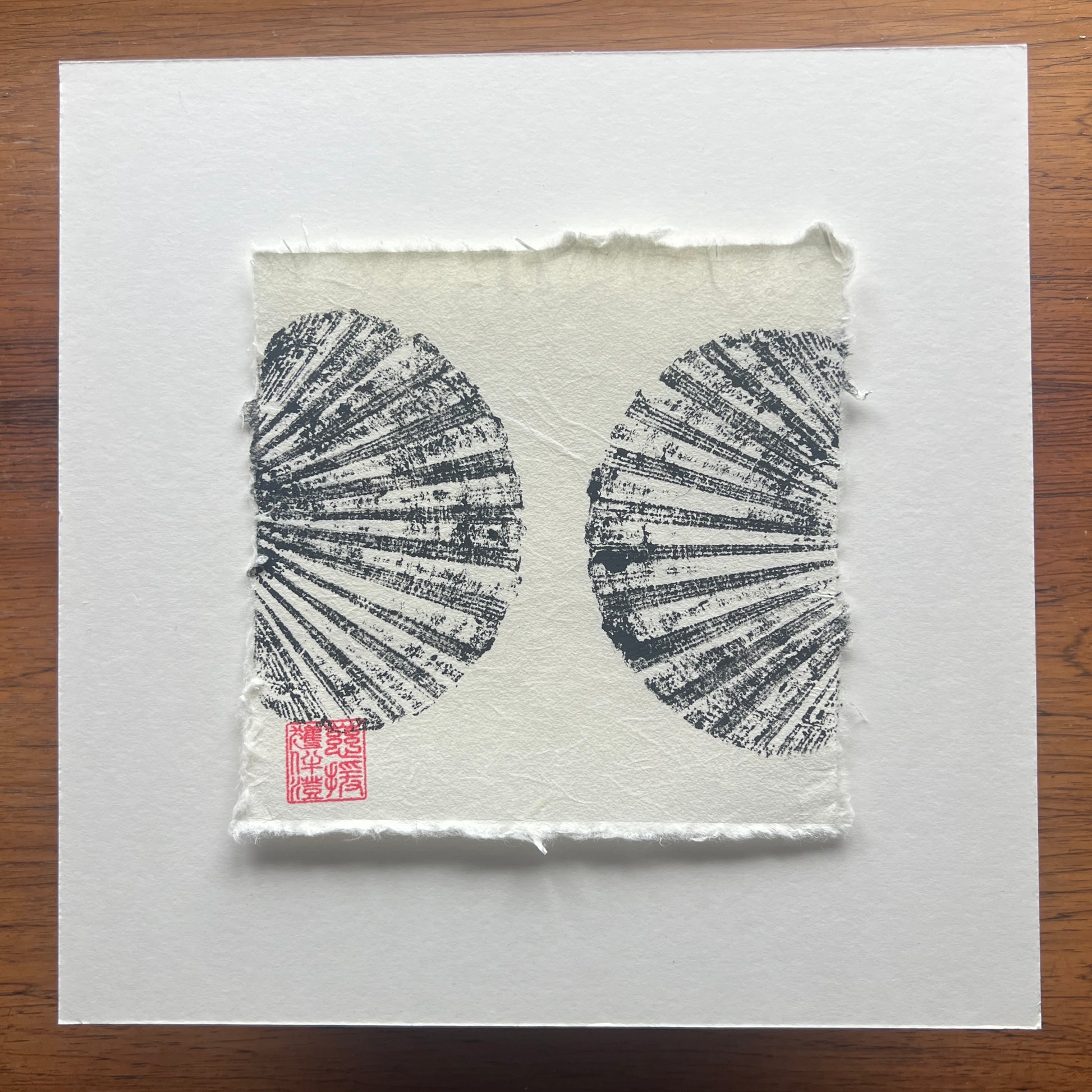 Two Scallop Shells Mini Print – Black Ink on Thai Mulberry Paper
